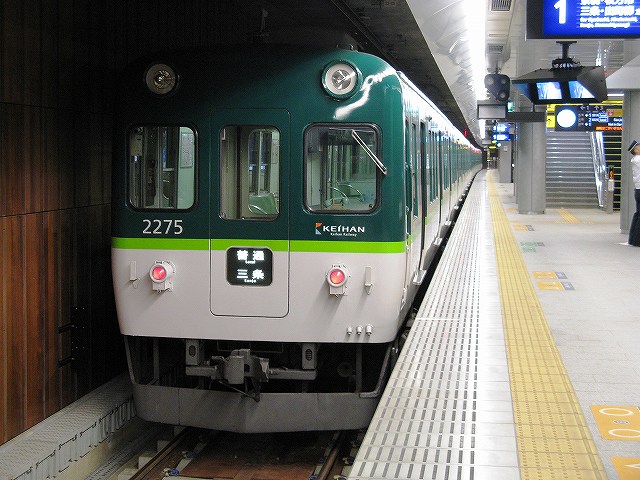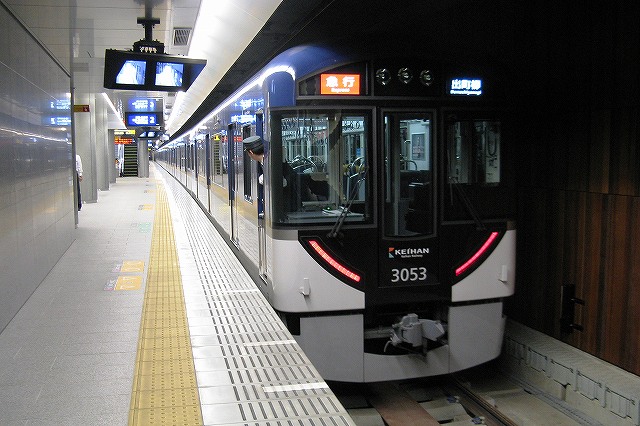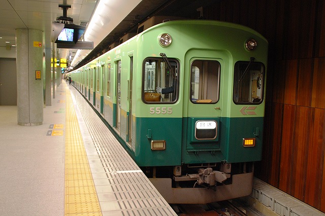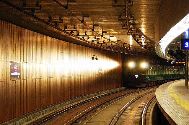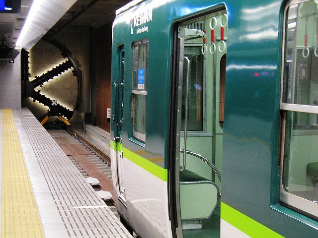 ・初日の出暴走(違) (左)早朝のアーバンライナーに乗り、車内より初日の出を拝みつつ大阪を目指す。 (右)難波へ到着。引き上げてゆくアーバンライナーを見送る。 ・シマへ行こう まずは昨年10/19に開業した京阪中之島線に乗ってみようと、地下鉄四つ橋線に乗り継ぎ肥後橋駅へ下車し連絡通路が繋がっている中之島線の渡辺橋駅へ。 中之島線の新駅のうち、他線に連絡しているのはこの渡辺橋駅のみで、つまり中之島線は大都市の都心部に有りながら鉄道的には「陸の孤島」だった場所に引かれていると言う事。 (左)渡辺橋駅コンコースに置かれていたイヌクシュク記念碑。 イヌシュクとは岩や木を人が手を伸ばした形に配置するイヌイット(カナダの原住民)のオブジェで。中之島線各駅の内装にカナダ杉が使用されていることから、有効の記念碑として関西カナダビジネスアソシエーションより贈られた物だそう。 (中)折角なので始発の中之島から乗車しようと、一旦地上に出る。 (右)堂島川ぞいにブラブラと1区間分歩き中之島駅を目指す。 (左)中之島駅に到着。 (中)階段の手すりは波型(?) 「いちびって」このような形になっているのではなく、階段を上下する際に手すりに垂直に力がかかるようにこのような形になっているのだそう。 (右)改札口付近の内装には、中之島線各駅共通の難燃木材と、水(川)を表現したガラスが用いられていた。 元旦のビジネス/官庁街に程近い駅と言う事で、お客さんの数はそれなり? ホームに下りる (左)新塗装の2200系が停まっていた。 (中・右)車止めの先には、トンネル工事に用いられたシールドカッターを利用したモニュメントが設置されている。 将来的にはこの先、西九条~桜島~夢州~南港方面への延伸や、阪神ヘの直通運転を構想しているそう。 (左)ホームにはもう一つ、「坂陽日日新」(はんようにちにちあらたなリ)と記された石碑があった。 (中)木材の壁をヘッドライトで照らしつつ、電車が進入してきた。 右手に見える切り欠き式の3番ホームは快速急行用だが、この日はお正月の特別ダイヤにて運行されていたため快速急行の運転はなく閉鎖されていた。 (右)やってきたのは片側5扉のユニークな通勤電車5000系。先頭はゾロ目の5555号車。 (左)中之島線に直通する快速急行用に新造された3000系だが、この日は「急行」として運用されていた。 (右)車内はこんな感じ。2+1の転換クロスシートが並ぶ。 複々線区間の土居駅へ移動し撮影。 (左)通常ダイヤでは見られない(と思われる)3000系の淀屋橋行き急行。 この日は正月ダイヤにつき10おきに特急/急行/普通が各一本運転されるパターンで運転されており。特急は淀屋橋発着、急行と普通は淀屋橋と中之島発着の物が交互に運転されていた。 (右)7200系の淀屋橋行き急行 (左)8000系特急の新塗装車と旧塗装車が擦れ違う。(画面右手の電車が新塗装) 京阪では中之島線開業を期して、本線系の電車の塗装変更を進めている。 (右)2800系の回送列車。 つづく。