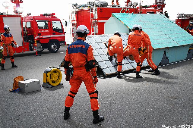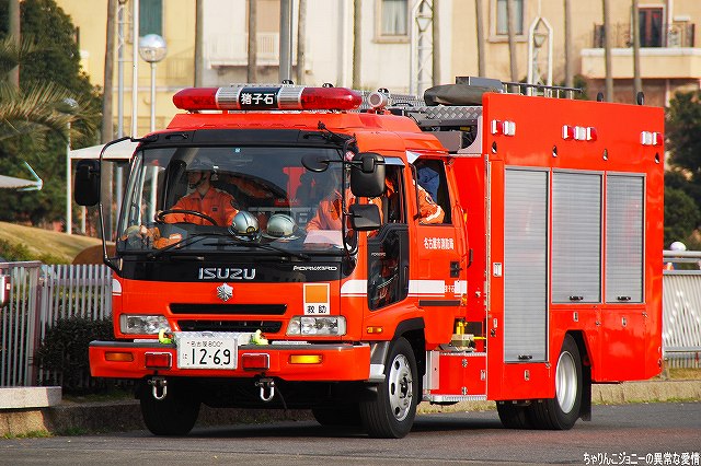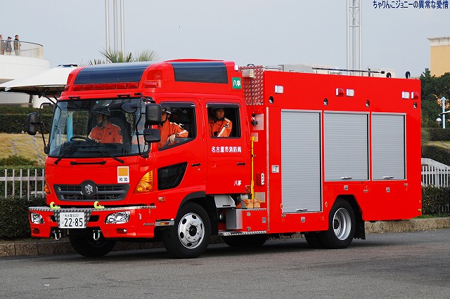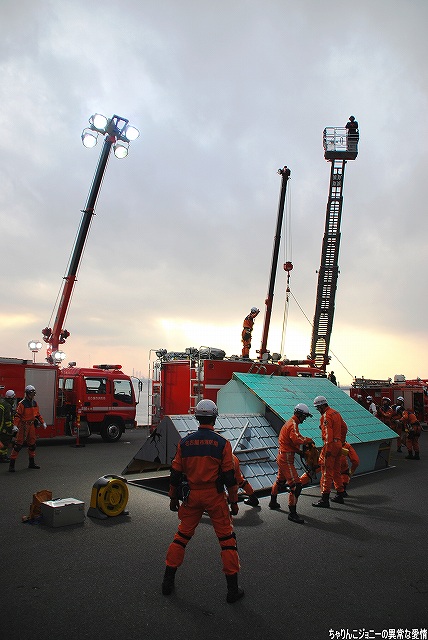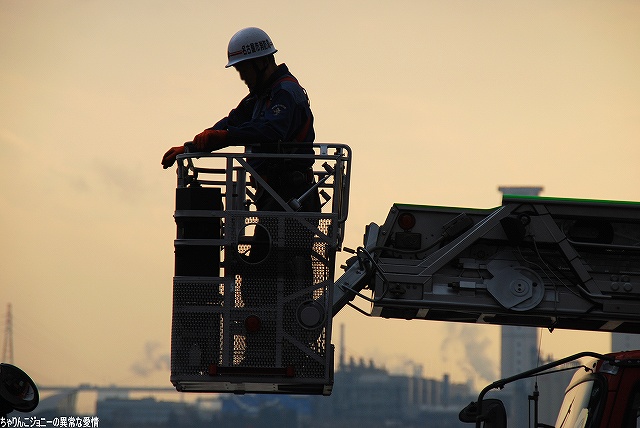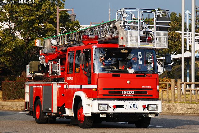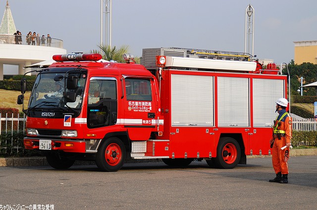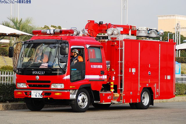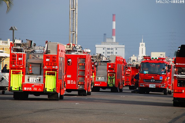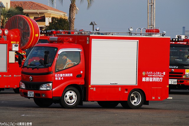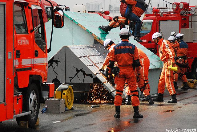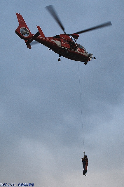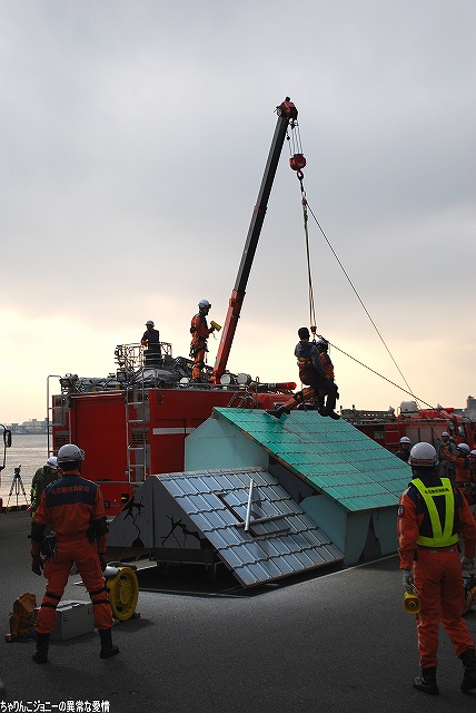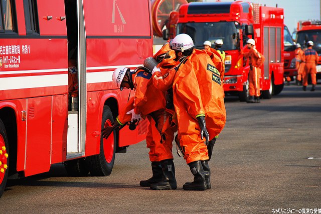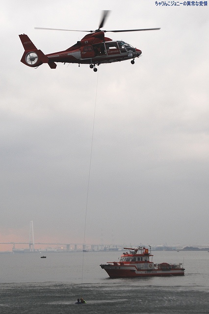 ワタシ警察のイベントは今回初めてなので、何時にも増して内容の薄いレポートになっているのはご勘弁を(^。^;) (左)視閲用のオープンカーが会場に到着。…ってこの時は幌被ってますけどね。 (右)会場に整列した白バイ。ホンダVFR…と車体に書いてあった(^。^;) 警察官の皆さんも整列し、本番に先立ち予行を実施。 (左)画面中央の機動隊員が手にしているのはMP5J機関拳銃(サブマシンガン) (中)機動隊員の盾は、樹脂製の透明なものに更新されていた。 (右)国旗を掲揚中 (左)分列行進のため駆け足で移動。 (右)車両も移動を開始。写真はRV車がベースのパトカー。 (左)制服警官(と言う表現でいいのかな?)の分列行進。 (右)女性警官(と場内放送で言っていた)の分列行進。 (左)機動隊の分列行進 (右)一部隊員が携行していた機関拳銃。 MP5Jはドイツのヘッケラー&コッホ社製のサブマシンガンで、本体上に光学サイトを載せているよう。 ホルスター内の拳銃は、一般のお巡りさん同様ニューナンブのリボルバーかな? (左)分列行進を終えた部隊は、会場後方で足踏みしつつ待機。 (右)警察犬の分列行進 (左)鑑識課の皆さんかな? (右)交通機動隊の皆さんかな?(ちゃんと場内放送聞いとけよ!(^。^;)) (左)オフロードバイクの分列行進。災害時の情報収集などが期待されているよう。 (右)白バイの分列行進。赤いツナギの人は女性隊員。 (左)パトカーの分列行進。 (右)覆面パトカーの分列行進。先頭の車はスカイライン。 (左)覆面パトカー@インプレッサ。速そう? (右)最後にパトカーの分列行進。 (左)会場後方にて待機していた部隊が、横一列になって一斉に前進。 (右)最初の位置に戻って再び整列。 この後、国旗の降納等の後予行は無事終了。 …つづく。 本投稿及び添付した写真は私ちゃりんこジョニーの著作物であり、他のサイト・掲示板及びブログ等への無断転載を禁じる。 特に、かつては「中華人民共和国萬歳」現在は「異常な愛情」と言う名のパクりブログを運営している、支那人窃盗常習犯sunbinsiftに対しては強く抗議する。 2回目の予行では大まかな段取りを確認していたよう。 (左)「事故車両」役の赤いトラックは「輸送車」と呼ばれる消防の車両で、主にボートの輸送に用いられる物だそう。 訓練とは言え、消防車両が事故ってるのもナンなので、本番の時には何処かのトラックを借りてくるのかな? (右)ファイバースコープを用いて、「倒壊家屋」の内部を検索中。 (左)照明が焚かれていた (中)「救助」の段取りを確認中。 (右)救助車に搭載されたクレーンにより、要救助者を救出。 3回目の予行ではほぼ本番通の訓練を実施。 (左)「次行って見よう!」ってことで、一旦待機位置に戻っていた「倒壊家屋」が登場。 (右)「飛竜」より、要救助者役の消防士さんがドボン! ちなみにただでさえ寒かったのに、この辺りから雨が降り始めてます。 3回目の予行にはヘリも登場 (左)飛来したのは名古屋市消防局が保有する2機のドーファンのうち、JA6779「なごや2」が飛来していた。 (中)消防士さんをホイスト降下させながら接近。 (右)海上の「要救助者」を吊り上げた。 (左)新型の救助車が2台並んで登場。 (右)側面のシャッターを開けて機材を取り出す。 (左)装備しているウインチを用いて「事故車両」を引き剥がす。 (右)ウォーターカッターを用いて車体を切断。(実際には切断せず。本番時はスクラップの車両を用意して切断する筈) 救出した「要救助者」(ダミー君)をストレッチャーに固定しヘリにて吊り上げる。 これは多分予行時のみの「スペシャル」でしょうね。 本投稿及び添付した写真は私ちゃりんこジョニーの著作物であり、他のサイト・掲示板及びブログ等への無断転載を禁じる。 特に、かつては「中華人民共和国萬歳」現在は「異常な愛情」と言う名のパクりブログを運営している、支那人窃盗常習犯sunbinsiftに対しては強く抗議する。 (^。^;)、この日は出初式の予行を撮りに、名古屋港ガーデン埠頭へ行って来ました。 本番当日では不可能な適宜場所を移動しながらの撮影が出来ました。 写真は2台の指揮車。奥の大きな方は名古屋市消防本部の指揮車。 (左)集合がかかり、駆け足で移動するハイパーレスキュー隊の皆さん。 (右)訓練を前にしての訓示中。 この日は出初式の後半に行われる「消防訓練」(要するに「訓練展示」)のうち、前段の「救助訓練」の予行を実施。 (左)一斉放水の段取りを確認中の、名古屋市の消防艇「金竜」(左側)と海保の消防艇「しらいと」(右側)。 (右)予行は3回行われ、1回目の予行では車両の停止位置などを確認。 (左)手前に停まっているバスのような車両は災害救援車。主に水難救助へ対応している車両との事で、車内では救助隊員がウェットスーツ等に着替る事が出来たりする。 (右)災害救援車の影で防護服を装着中 (左)海上では、消防艇の「分列行進」の予行が行われていた。 (右)先頭は名古屋市消防局の「飛竜」。指揮等に使われているよう。 (左)続いて名古屋市消防局の消防艇「飛竜」