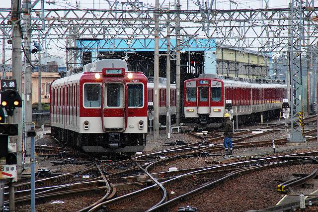 この日は近鉄大阪線の青山峠越え区間などで撮影してきました。 この辺りの区間は人家もまばらな山間部ながら名阪/阪伊/京伊の各特急が行き交うという、私鉄最長の路線網を誇る近鉄ならではの区間で、人呼んで「特急銀座」。 乗り換えの中川駅にて、伊勢へ向かうアーバンライナー(左側)と大阪上本町へ迎うスナックカー。 中川駅は大阪/名古屋/伊勢方面への各路線が合流する結節点。 上本町行きの急行に乗り換えて名張へと向かう。 (左)青山町駅にてアーバンライナーに道を譲る。 (右)ここまでは4両編成で来たが、名張駅にて前部にシリーズ21を2両増結…したがワタシは此処で下車。 時折小雪がちらつく名張駅に、12200系スナックカーと30000系ビスタEX連結の難波行き特急が到着。 ビスタカーは近年近代化改修され車内設備及び外観が変化しており、名称もビスタEXへと変更された。 12000系のマイナーチェンジ型として1969年に登場し、一部に廃車されたり団体用に改造されて利しているものの、現在でも122両が在籍して近鉄汎用特急車の中核を為しているが、今年から始まる新型特急車の配備により徐々に姿を消して行く模様…よってこの日の撮影はスナックカーを中心に実施。 愛称のとうり登場時は車内に軽食を提供するスナックコーナーを有していたが、現在は撤去され客室等になっている。 2両に1両ずつ2基のパンタグラフを装備しているので、8両編成だと8基ものパンタが林立する。 一部車両のパンタグラフは下枠交差形の物に交換されている他、長期似渡って大量に使用された車両の常で、車両によって近代化改修などにより外観及び車内設備に差異が生じている。 名張駅には車庫が併設されており、構内入れ替えの様子を見ることも出来る。 伊賀神戸(いがかんべ)駅へ移動。 (右上)同じく伊勢志摩ライナー (左)さらにスナックカー+サニーカーの賢島行き特急 (左)22000系「ACE(エース)」+スナックカー+サニーカーの上本町行き特急。 通勤車/特急車とも各形式ゴチャ混ぜでマメに増解結を行うのが近鉄の特徴。(ただし、アーバンライナーと伊勢志摩ライナーは別) 本形式のマイナーチェンジ型である22600系によりスマックカーの置き換えが進められるよう。 (右)スナックカー8連の京都/難波行き特急。 オマケ・伊賀神戸より発着する伊賀鉄道の車両4態 伊賀鉄道名物、松本零士さんデザインによる「くのいち電車」。緑色バージョン(左)とピンク色バージョン(右)が有る。 (左)全面広告車。 三重県下の近鉄線や三岐線等でお馴染の不動産会社がスポンサーの車両。 (右)近鉄時代からの塗装を引き継ぐ通常塗装の電車。 …つづく。 PR 写真は、視閲式とは関係なく会場直上を飛行して行ったJ-AIRのボンバルディアCRJ200。 予行と本番の間に少し時間が有ったので、陣地変換して反対側サイドより撮影することに。 (右)音楽隊の前を通過し視閲へ向う愛知県警本部長 (左)分列行進に向け移動中 (右)会場後方に停まっていた特殊車両は分列行進などには参加せず。 機動隊の分列行進は迫力ありますね~ (左)オフロード…と言うよりトライアル用バイク? (右)白バイの分列行進 (左)本番ではヘリのダイヤモンド編隊飛行も実施された (右)先頭を飛んでいたアグスタAW109E JA6922「あかつき」 2列目は2機の川崎BK-117 (左)BK117B-2 JA6781「あさやけ1」 (右)BK117C-1 JA6816「あさやけ2」 (左)殿はベル412EP JA21AP「あけぼの」 (右)以上4機が愛知県警航空隊の全勢力。名古屋飛行場(県営名古屋空港)をベースに活動している。 分列行進を終え整列位置に戻る所。 本投稿及び添付した写真は私ちゃりんこジョニーの著作物であり、他のサイト・掲示板及びブログ等への無断転載を禁じる。 特に、かつては「中華人民共和国萬歳」現在は「異常な愛情」と言う名のパクりブログを運営している、支那人窃盗常習犯sunbinsiftに対しては強く抗議する。