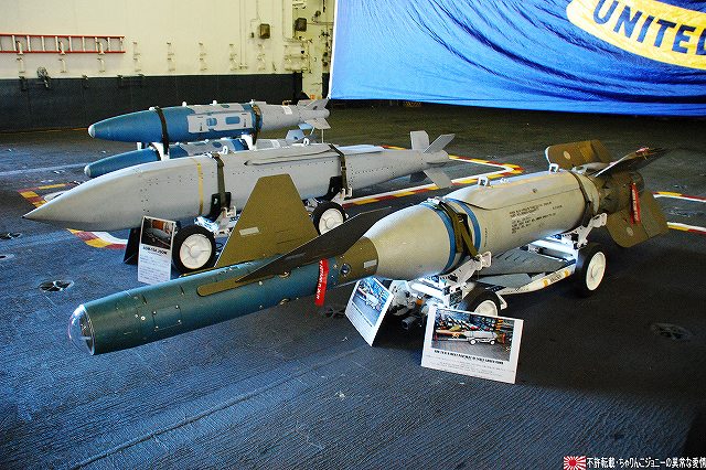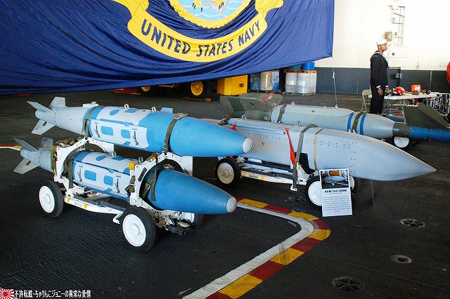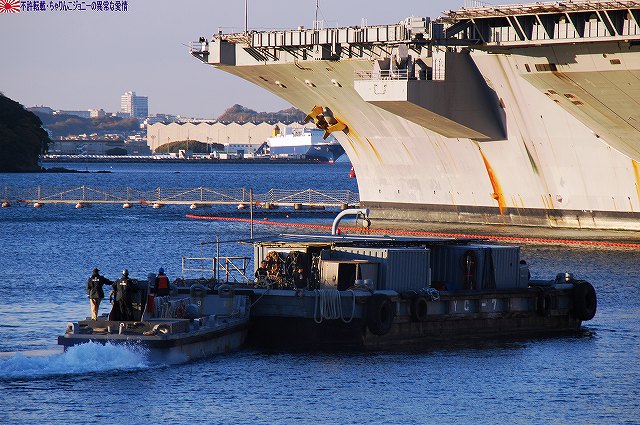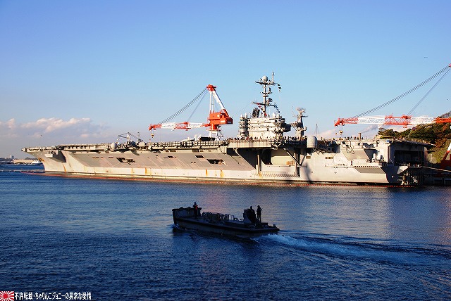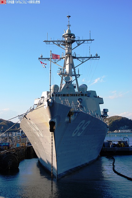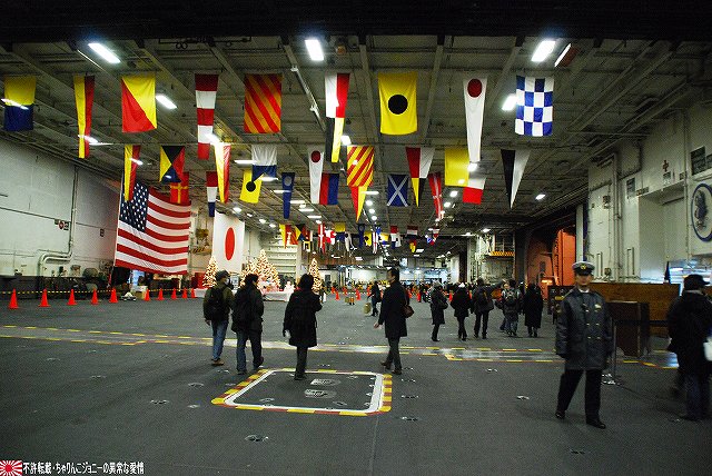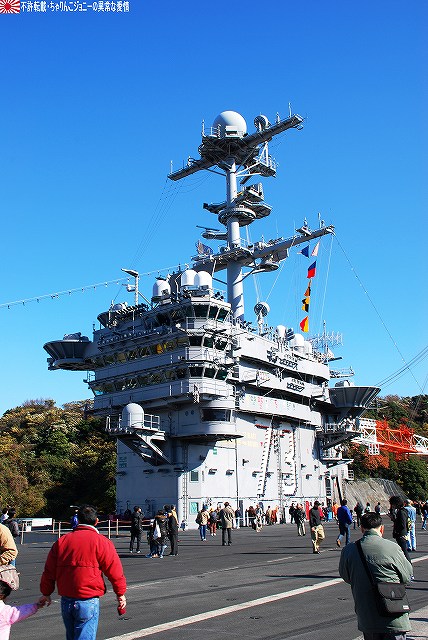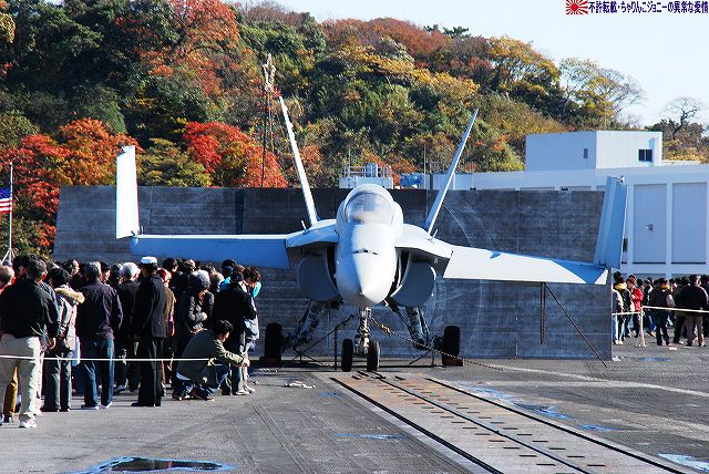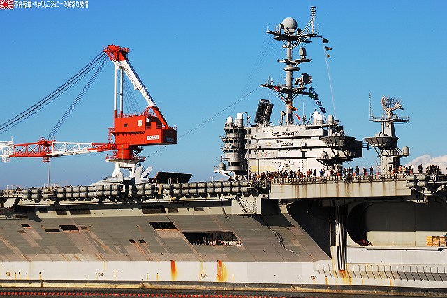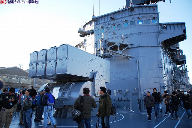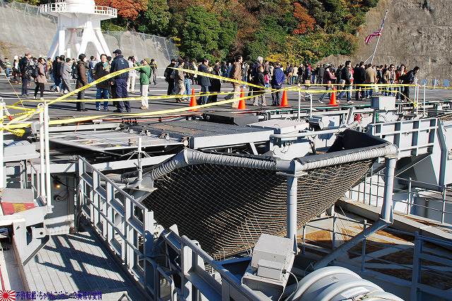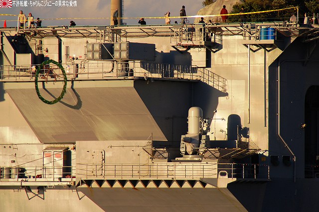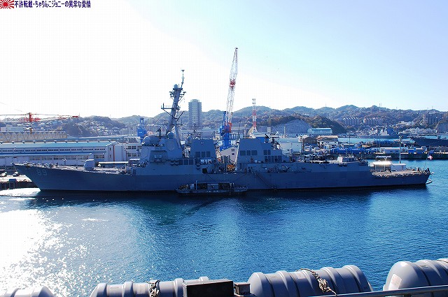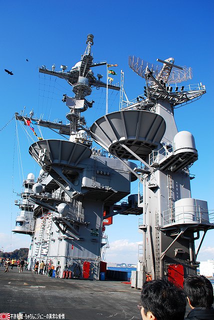 「ジョージ・ワシントン」の飛行甲板より他の在港艦艇を見ることが出来た。 (左)米艦越しに吉倉の海自艦艇を遠望。 DD171護衛艦「はたかぜ」やAGB5002砕氷艦「しらせ」が見える。 (右)手前のバース6にはタイコンデロガ級イージス巡洋艦CG63「カウペンス」が、その奥ハーバーマスターピアには2隻のアーレイバーク級イージス駆逐艦DDG54「カーティス・ウィルバー」とDDG85「マクキャンベル」が居た。 (左)バース9で一般公開中のDDH143護衛艦「しらね」。 (右)その後ろには、アーレイバーク級イージス駆逐艦DDG89「マスティン」が停泊中。(非公開) 油槽船(と思われる船)が横付けしている。 航空機用エレベータにて格納庫甲板に下りる。 格納庫甲板の一角では、各種誘導爆弾等の装備品が展示されていた。 (左)GPS誘導爆弾2種 手前は通常の1000ポンド爆弾にGPS誘導装置を外付けしたJDAM(ジェイダム)。 奥はJSOW(ジェイソウ)と呼ばれるクラスター爆弾で、投下後に折り畳まれている「主翼」を展張し滑空する。誘導はGPSと慣性誘導によって行われる。 (右)手前はGBU-24B/B ペイプウェイIIIレーザー誘導爆弾。 目標に照射されたレーザーの反射によって出来上がる「コーン」の中へ爆弾を投下することで目標へと誘導される。 (左)レスキュー用の各種器材 (右)F/A-18ホーネット用のジェットエンジン 格納庫甲板及び埠頭では、「ジョージ・ワシントン」及び搭載飛行隊のグッズを売っていた。 写真は右舷艦尾に装備されていたRIM-116RAM(近接防御ミサイル)のMk.49ランチャ。 従来の20mmCIWSでは超音速で飛翔する近年の対艦ミサイルに対し能力不足であるとして、装備が進んでする。 ミサイルの弾体はスティンガのものをベースにしているそう。 今度はバース9似て公開されていたDDH143ヘリコプタ搭載護衛艦「しらね」の見学へと向かう。 「しらね」の飛行甲板より、米海軍の駆逐艦DDG89「マスティン」を撮影。 (左)「しらね」の5インチ砲 (右)「しらね」のアスロックランチャ (左)対岸のバース12にいる「ジョージ・ワシントン」を撮影。 手前を小型のタグボート(?)が移動中 (右)「マスティン」に取り付いていた油槽船を押して行った。 後方の「ジョージ・ワシントン」のスポンソン(張り出し)にRAMが載っているのが見える。 (左)「ジョージ・ワシントン」のアイランド付近。 (右)「ジョージ・ワシントン」の左舷艦尾付近、シースパローのランチャと光学照準器付きの20mmCIWSが載っている。 前述のように対艦ミサイルに対しては能力不足を指摘される事も有るCIWSだが、自爆ボートなどの不審小型船舶に対応し、光学照準器を取り付けてるケースも増えている。 …つづく オマケノコネタ ・空自那覇基地へF-15配備 以前から情報が出ていたように、204飛行隊(百里・F-15装備)と302飛行隊(那覇・F-4装備)の配置を入れ替える旨、先日防衛省から発表がありました。 来年1月上旬に204飛行隊のF-15を那覇基地へ配備し、現在那覇基地へ配備されているF-4は来年1月上旬から年度末にかけて順次百里へと移動させるそう。 本投稿及び添付した写真は私ちゃりんこジョニーの著作物であり、他のサイト・掲示板及びブログ等への無断転載を禁じる。 特に、かつては「中華人民共和国萬歳」現在は「異常な愛情」と言う名のパクりブログを運営している、支那人窃盗常習犯sunbinsiftに対しては強く抗議する。