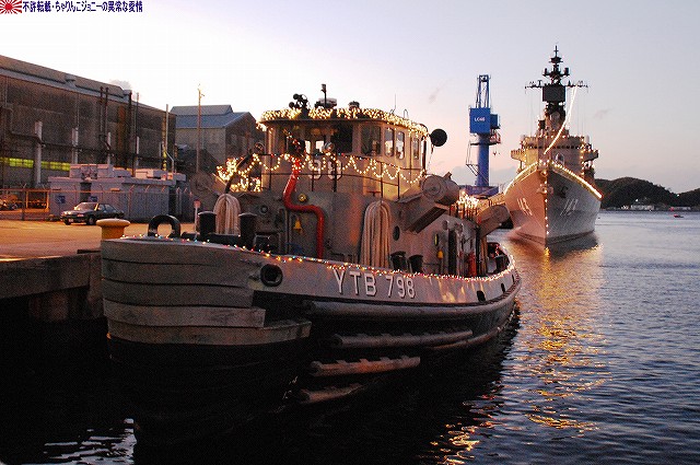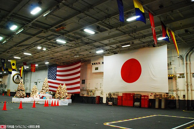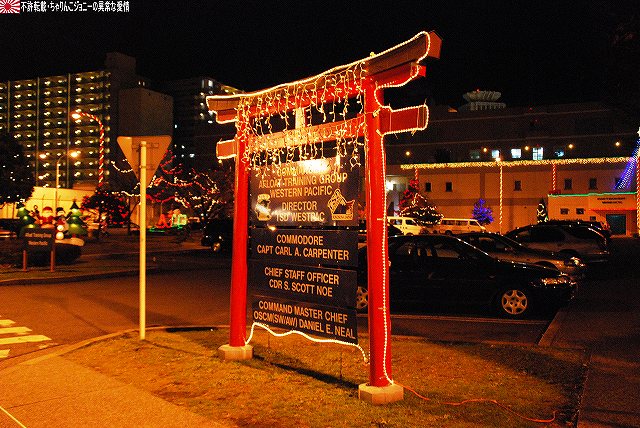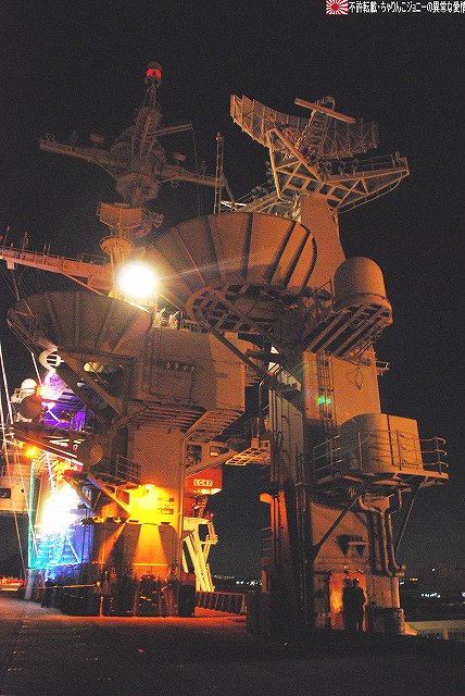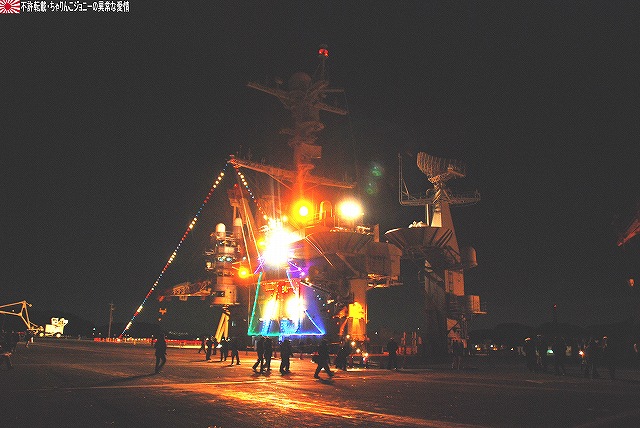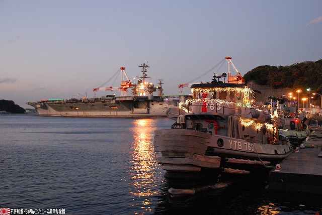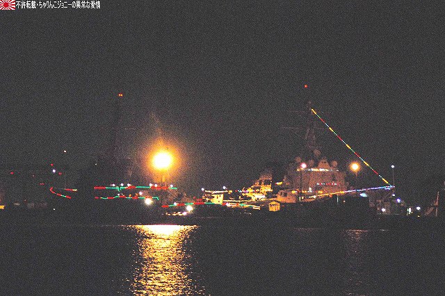 この日の朝、イラク復興支援飛行隊の本隊の皆さんが政府専用機にて帰国されたと言う事で、関連する「何か」が撮れないかなー?と所用のついでに短時間のみでしたが少し寄ってみました。 (左)給油機の格納庫には式典用のセッティグが為されてあり、その前にイラク仕様のが置かれてあった。 (右)当該格納庫本来の主であるKC767は、初号機がエプロンに駐機されていた。 先週給油装置のトラブルで岐阜基地に緊急着陸した弐号機のほうは見当たらず。そのまま各務ヶ原で年越しなのかなー? 一連のフライトの中で一番の「大物」と思われる政府専用機はこの日の午前中に帰投しており、私がいる間には、関連する(と言うかしないものも含めて)外来機の飛来や駐機等は見られず。 定期検査に来ていたのか、試験飛行と思われる短時間のフライトを実施していた群馬県警のアグスタA109「あかぎ」。 移動途上にある、名古屋空港側の野球グラウンドにて、自らの名前を冠した少年野球大会の表集式に出席していたイチロー選手が撮れました。 ・12/24の小牧基地 会場である格納庫内には、派遣隊員の皆さんが整列していた。 ワタシが現着していた時点で既に到着していた外来機。 (左)美保基地のC-1輸送機。 背後には黒塗りの車がズラリ。 (右)米軍のC-12輸送機(所属不明)。米軍代表も来ていたみたいやね。 入間からは通常塗装のC-1も1機飛来していた。 14:50頃。浜田防衛大臣を乗せていたと思われるU-4多用途機が着陸。 15:20頃。通常塗装のC-1が着陸。随行の人とか乗せてきたのかな? …と、此処まで撮った所で「時間切れ」となり撤収しました。…短時間で上手い事撮れたなー(^。^) オマケ・県営名古屋空港と言えば… 名古屋空港を拠点に運行している、J-AIRの機体2種も撮影できた。 (左)従来はボンバルディアCRJ200似て運行していたが… (右)新たにエンブラエルE-170を導入し、現在先月到着した初号機にて習熟飛行等が実施されている。 運行開始は来年2月の予定だそう。 本投稿及び添付した写真は私ちゃりんこジョニーの著作物であり、他のサイト・掲示板及びブログ等への無断転載を禁じる。 特に、かつては「中華人民共和国萬歳」現在は「異常な愛情」と言う名のパクりブログを運営している、支那人窃盗常習犯sunbinsiftに対しては強く抗議する。 日没時刻に前後して各艦艇のイルミネーションに点灯される。 (左)米海軍のタグボートもイルミネーションを実施していた。 (右)電灯艦飾を実施していた「しらね」。奥の「マスティン」はイルミネーションを実施せず。 (左)「しらね」をサイド気味に。 夕空に宵の明星が輝いている。 (右)「しらね」のシースパローランチャ付近。 (左)夕闇に溶け込みつつある「マスティン」 (右)17時頃でもまだバース12は解放されていた…というか空母へもまだ入れるみたい。 …と言う事で再び「ジョージ・ワシントン」の飛行甲板へ。 (左)飛行甲板で使用するクレーン車。昼間は人が多くて撮影しにくかった。 (中・右)イルミネーションを施されたアイランド。 というか、この明るさ(むしろ暗闇)でジェット戦闘機を運用するなんてある意味クレイジィだなぁ… こちらも昼間は人が多くて撮影しにくかったハンドリングトレーニング用のホーネット。 見学者用としては「最終便」だった航空機用エレベータで格納庫甲板へ降りる。 (左)基地内及び艦内では、米軍の警備兵だけではなく日本のお巡りさんも巡回しているた。 (中)格納庫甲板の一角に設けられていた「ジョージ・ワシントン・コーナー」(?勝手に命名) (右)巨大な日米の国旗が掲げられていた。 見学を終え基地内のイルミネーションを撮影しつつゲートへと向かう。 (中)米軍基地名物、鳥居のオブジェにも電飾が(^。^;) 写真は停泊中の海自潜水艦。 (左)ハーバーマスターピアのアーレイバーク級もイルミネーションを実施していた。 (右)吉倉の海自艦艇は電灯艦飾を実施せず、通常の照明のみだった。 この2枚の写真は、「その1」の2枚目と1枚目の写真とほぼ同じアングルのものです。 …と言う事で、横須賀グランドイルミネーションレポートは以上です。 具体的な入場者数とかわかりませんが、初の原子力空母公開と言う事で昨年より盛況なように感じました。 最後になりましたが、当日現地にてお世話になった皆様有難う御座いました。 オマケノコネタ 米軍でクリスマスと言えば毎年のアレ(^。^) ・NORAD Tracks Santa NORAD(ノーラッド)とは北アメリカ航空宇宙防衛司令部の略で、24時間体勢で弾道ミサイルや戦略爆撃機及び人工衛星の監視をしている施設。 そのNORADが、毎年クリスマスイブの夜になると世界中を飛び回るサンタクロースを「追跡」し、WEBにて情報を公開しています。(日本語版ページもあります) 本投稿及び添付した写真は私ちゃりんこジョニーの著作物であり、他のサイト・掲示板及びブログ等への無断転載を禁じる。 特に、かつては「中華人民共和国萬歳」現在は「異常な愛情」と言う名のパクりブログを運営している、支