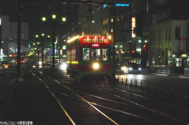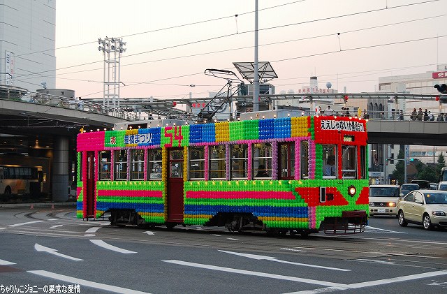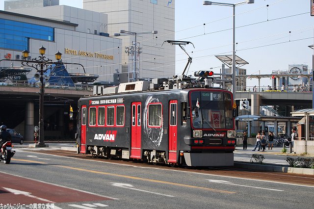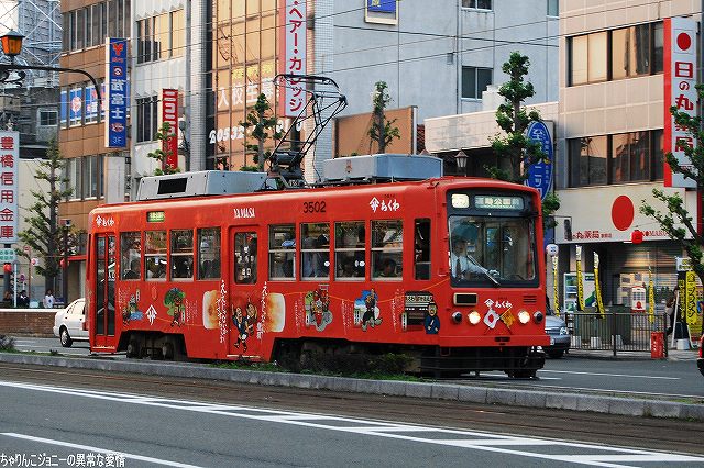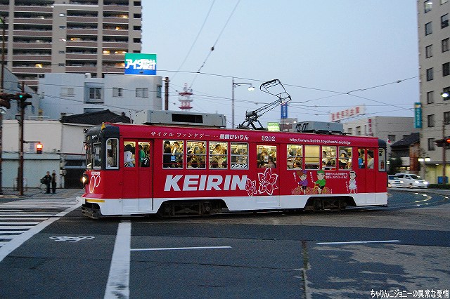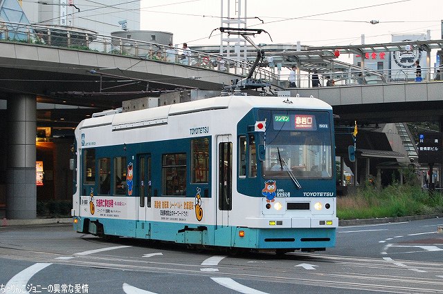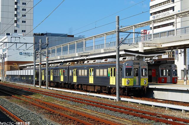 先ずはJR豊橋駅より、隣接する位置へと移転した豊橋鉄道新豊橋駅の状況を撮影。 ちょうど黄色を基調とした「なのはな」編成がやってきていた。 ・1800系 600V時代は雑多な元名鉄車を含む吊り掛けモータ車や名鉄5200系の車体に国鉄101系の足回りを組み合わせた(※1)1900系等が使用されていたが、1997(H7)年の1600V昇圧に際し名鉄7300系に統一された。 ところが、吊り掛けモーター車で性能が低く2扉転換クロスシート車なのでラッシュ時の収容力にも難が有り(※2)、昇圧に伴いスピードアップしたダイヤを維持する事が出来ず遅れが常態化する事態に陥った。 そのため早くも2001(H12)年に、18m 3扉 ロングシート車両の元東急7200系の譲渡を受け、1800系として使用を開始。 1800系はステンレス地に赤塗装(…ってステッカーらしいけどね)が基本だが、写真の「なのはな」号として黄色の塗装が施されている編成や、「なぎさ号」として青色の塗装が施されている編成が有る。 さらに今年に入り、新豊橋駅の移転/配線変更に伴い車両の運用数が増えた事から、上田電鉄より同型車2両の譲渡を受け、部品取り用として豊鉄が保管していた1両と合わせ、新たに3両編成1本が登場しており、こちらは緑系の塗装が施されているそう。 ※1:5200系本来の足回りは5300系に転用 ※2:豊橋鉄道渥美線は、近年のローカル私鉄では珍しく輸送力が伸びている路線。 写真は元名鉄揖斐線の780形。新たにアドバンカラーの全面広告電車がお目見えしていた。 ちなみに、「駅前」の電停は、かつてはこの写真で電車がいる辺りに設置されていて、豊橋駅からは横断歩道や地下道にて少し歩かなくてはならなかったが。1998(H10)年に路線を150m延長し、豊橋駅前ペデストリアンデッキ下に新設された停留所へと乗り入れるようになり、利便性が向上している。 ・モ780形 名鉄揖斐線-岐阜市内線直通運転用に1997(H9)年から翌年にかけて7両が登場した形式だが、2005(H17)年の路線廃止により全7両が豊橋にやって来た。 車番を含め基本的には名鉄時代のまま使用されているが、豊橋では連結運転を行わない為連結器は撤去されたり、車内に降車知らせボタンが追加されていたりする。 もと東京都電7000形の3500形。 (右)何故かワタシが豊橋へ行くと車庫で休んでいる事の多いモ3502「ヤマサのちくわ」。今回は動いている所を撮影できた。 ・モ3500形 元東京都電7000形。1992(H4)年と1999(H11)に2両ずつ計4両が譲渡された。 豊橋での使用に際し… ・軌間及びモータの変更(※3) ・冷房装置の搭載 ・集電装置の変更(※4) ・前扉を引き戸からバスタイプの折戸へと変更 ・中扉の位置の変更 ・ステップの設置(※5) …等の「大改造」が実施されている。 ※3:1372mm→1067mm 軌間が狭くなった事により、左右両輪の間に収まるモータも手持ち品に変更。そのため出力が落ちてしまったそう。 ※4:ビューゲル→Zパンタ ※5:都電荒川線は、全停留所にプラットホームが設置されている。 本命の花電車キター。 使用されているのは名古屋市電最後の生き残りであるモ3102。この車両は夏期のビール電車等イベント用に使用されているよう。 (左)後方に元名鉄美濃町線モ800形を従えている ・モ3100形 元名古屋市電1400形。 名古屋市電の標準型として1937(S12)年より75両が量産され、1974(S49)の市電全廃まで主力として活躍した車両。 各所に新機軸を搭載しつつ計量化を図った車両で、名古屋市電を代表する優秀車と言われている。 豊橋へは1971(S46)に9両が譲渡され、うち7両が冷房化改造され近年まで主力として活躍していたが、 2005(H17)年の名鉄岐阜600V線全廃に伴う「新車」が一挙投入により、現在は夏場の「ビール電車」や豊橋まつりの花電車等のイベント用として3102の1両を残すのみ。 愛知県警の広告が貼られていた。 ・モ800形 名鉄美濃町線用にバリアフリーの部分低床車として2000(H12)年に3両が登場するも、2005(H17)年の路線廃止により岐阜での活躍は僅か5年ほど。 その後801が豊橋に、802と803は福井鉄道(※6)へと譲渡された。 特殊な構造ゆえか、井原にて分岐する際の急カーブ(※7)を曲がれない為、運動公園前には入線できず。運用は専ら駅前-赤岩口間に限られている。 東田本線の車両は、イベント用の3102を除き広告電車となっているが。801の場合岐阜時代の基本塗装を残しつつ、部分的に広告が入れられている。 そのため広告の入替が容易なのか、比較的短期間の広告に利用されているよう。 ※6:福井鉄道へはその他に、共に連接車の揖斐線用モ770形と美濃町線用モ880形が譲渡されている。 ※7:半径11m。日本の鉄/軌道の中では最も急なカーブらしい ここからは新川電停付近で撮影した写真。 ・モ3200形 元名鉄モ580形。 岐阜市内専用として1955(S30)年より翌年にかけて4両が製造され、後に揖斐線直通運用に転用された510/520形とトレードする形で美濃町線用に。 更にその後、美濃町線へ870形及び880形の連接車投入に伴い、1976(S51)年に1両、1981(S56)に2両の計3両が豊橋鉄道入りしている(※8)。 ※8:残る1両は南知多ビーチラン