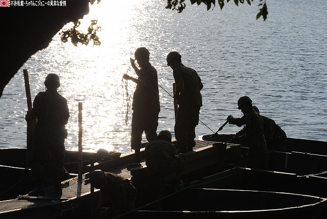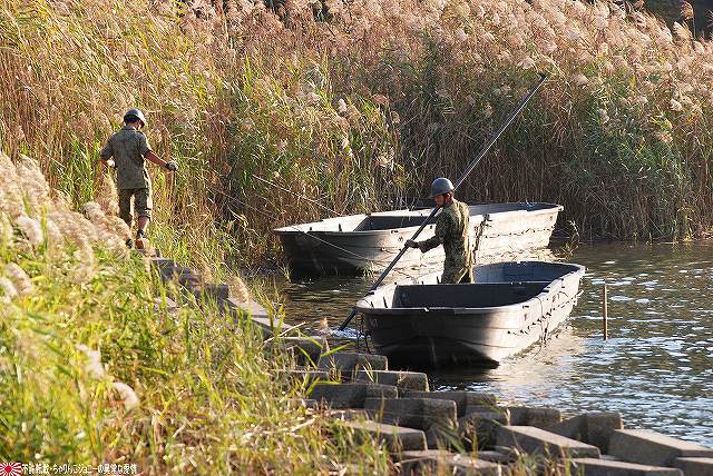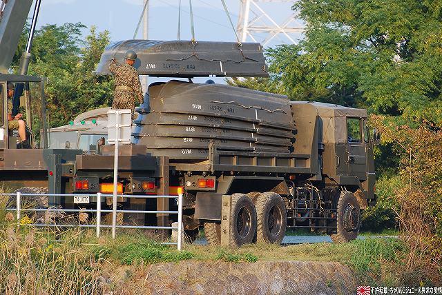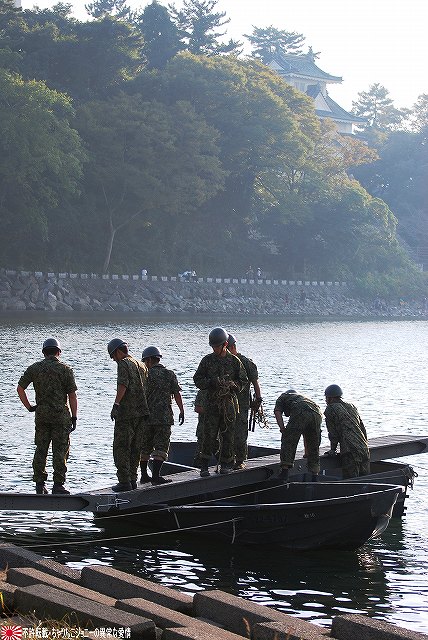 豊橋市役所前にて展示されていた、豊橋の消防車。 近年では珍しくなりつつある、機器が露出したタイプのものだった。 市役所に隣接している吉田城址は公園として整備されていた。 (左)本丸を含む城内では地元小中学生の作品展が開催されていた。 (右)当時の建物は1871(M4)年の失火により殆ど焼失しており、現在本丸の一角に建つのは1954(S29)年に模擬再建された隅櫓。 この場所には、建設される事がなかった天守閣に変わる役割を果たしていたと言う鉄(くろがね)櫓が建っていたそう。 城の背後は「天然の要害」として豊川が流れている …って、あら?! (左)プログラムには「救命ボート試乗」と書かれて有ったので消防のそれかと思いきや、陸自豊川駐屯地の渡河ボートがやってきていた。 (右)関連する車両も展開していた。 もそっと近付いて撮影してみる。 その名のとうり、敵の進行を阻害する為道路に障害物を構築する為の車両だが、当然ながら今回はレッカ(クレーン)車の代用として展開していたよう。 現着したときには既にボート試乗は終了しており、後片付け中だった。 (右)背後に吉田城の隅櫓が見える。 ちなみに、戦前の吉田城には陸軍部隊が駐屯していたそう。 (左)車両を誘導中 ボートを陸揚げ場所へと移動させる。 渡河ボートは、通常2分割されている船体を背中合わせに繋ぎ使用される。 引き続き搭載作業中。 隊員の皆さんお疲れ様でした。 当日現地にてお世話になった皆さん有り難うございました。 本投稿及び添付した写真は私ちゃりんこジョニーの著作物であり、他のサイト・掲示板及びブログ等への無断転載を禁じる。 特に、かつては「中華人民共和国萬歳」現在は「異常な愛情」と言う名のパクりブログを運営している、支那人窃盗常習犯sunbinsiftに対しては強く抗議する。 PR と、言う事で… ・たま駅長へ「ナイト」の称号を授与 和歌山の知名度が上がり観光客が増えた、として和歌山県が新たに創設した「和歌山県勲功爵」の称号を授与すると発表したもの。 授与式は28日の予定だそう。 ・「たま電車」のデザイン発表 和歌山電鐵では現在「たま電車」サポーターを募集中とのこと。