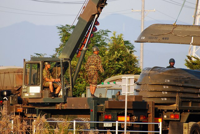 有る意味今回の守山駐屯地祭のハイライト? 装備品展示の為に着陸するUH-1J。 守山駐屯地祭の装備品展示にヘリが着陸し加わるのは、たぶん初めてではないとは思いますが少なくとも私は記憶に無いです。(毎年通っている訳ではないですけどね) (右)隊員さんの指差すその先に… OH-6Dも着陸した。 (左)装備品展示の為移動したFH-70 155mm榴弾砲 (右)同じく74式戦車。 74式戦車は、この場所にて砲塔の旋廻や姿勢制御装置の動作等の展示を数回実施した。 ちなみに今回の守山駐屯地祭では戦車や車両等の「体験試乗」は実施されなかった。 陣地内等短距離の移動は搭載するエンジンにより砲単体で行えるが、本格的な移動はトラックに牽引されて行う。 公道走行用の各種警告表示にも注目。 地上展示されたUH-1J。UH-1JはUH-1シリーズに日本(つか富士重)独自の改良を加えたタイプ。 (左)装備品展示開始(見学者に囲まれる)直前の様子。奥にはOH-6Dが見切れている。 展示された機体は、エンジン排気口付近に赤外線追尾対空ミサイル避けの「ミラーボール」を(中写真)、機種下面にFLIR(赤外線暗視装置・右写真)を搭載していた。 (右)機体番号の隣に貼られた第10飛行隊のエンブレムにも注目 装備品展示には対人狙撃銃も登場。 米軍にM24として採用されている米国レミントン社製のボルトアクションライフル。 狙撃銃の代用としても使用されていた64式小銃の退役が進んだ事により導入された。 対空ミサイル2題 (左)93式近距離地対空誘導弾(近SAM) 従来の対空機関砲に替わって導入された (右)81式短距離地対空誘導弾(短SAM) どちらも、第10高射特科大体(豊川)の所属車両 82式指揮通信車がベースの装甲車両2題 (左)87式偵察警戒車。第10偵察隊(春日井)の所属車両。 (中・右)科学防護車。核・生物・化学兵器が使用された際に、汚染状況の観測や使用された薬品等の特定等に用いられる。 車体上部には各種センサが、車体後部には汚染地域の土壌サンプル回収用のマニプレータが装備されている。 第10科学隊(守山)の所属車両。 (左)野外入浴セット。「足湯」を実施していた。 (右)リアル・モリゾー再び!(^。^) 「サバイバルコーナー」にて展示(?)されて居ました。 ここからは、装備品展示以外の車両の写真を… 「第10師団 災害派遣隊」の横断幕を掲げ駐屯地の一角にとまっていた、即応用(?)の車両。 (左)82式指揮通信車 (右)通信隊の73式中型トラック(新)。各種機材を搭載していた。 どちらも観閲行進に参加して、この位置に停められていたよう。 万が一戦車等が故障した際に備えてやって来ていたようだけども、幸にして出番はなし。 ・オマケ 駐屯地内を移動する74式戦車の動画 名鉄は、本形式により瀬戸線の在来車を全て置き換える予定。 最後になりましたが、現地にてお世話になった皆さん有難うございました。 本投稿及び添付した写真は私ちゃりんこジョニーの著作物であり、他のサイト・掲示板及びブログ等への無断転載を禁じる。 特に、かつては「中華人民共和国萬歳」現在は「異常な愛情」と言う名のパクりブログを運営している、支那人窃盗常習犯sunbinsiftに対しては強く抗議する。
