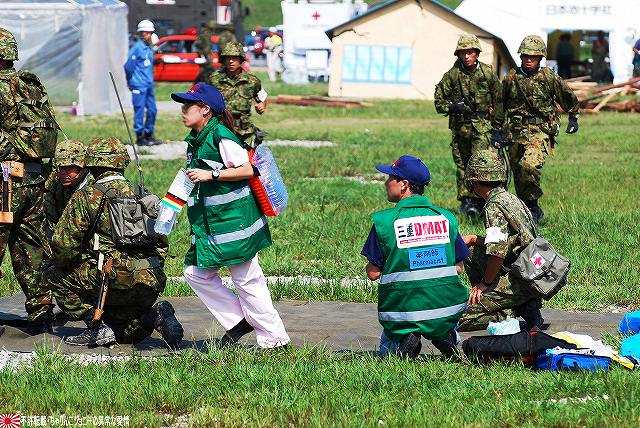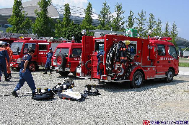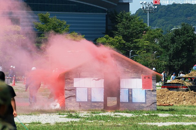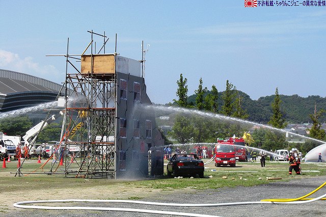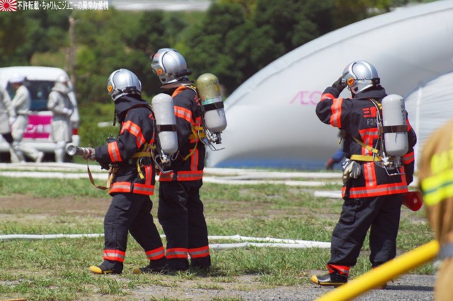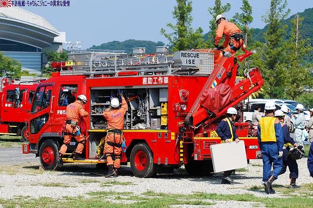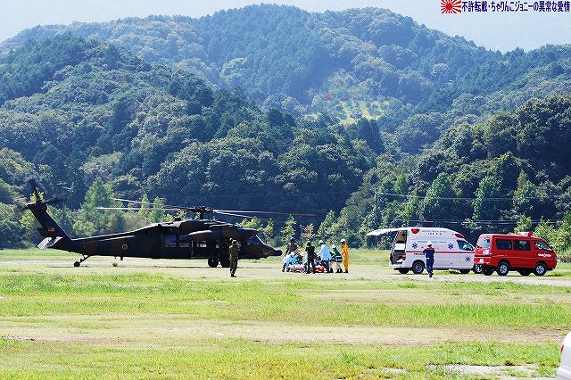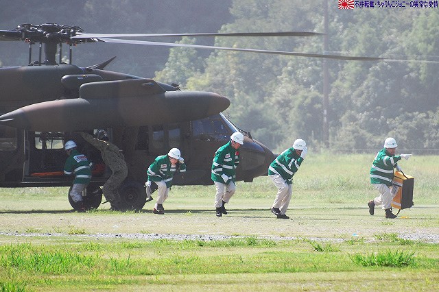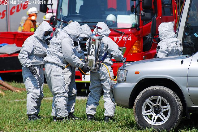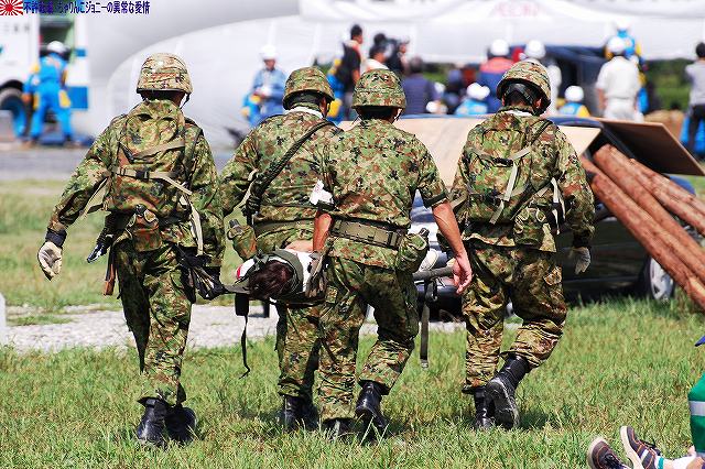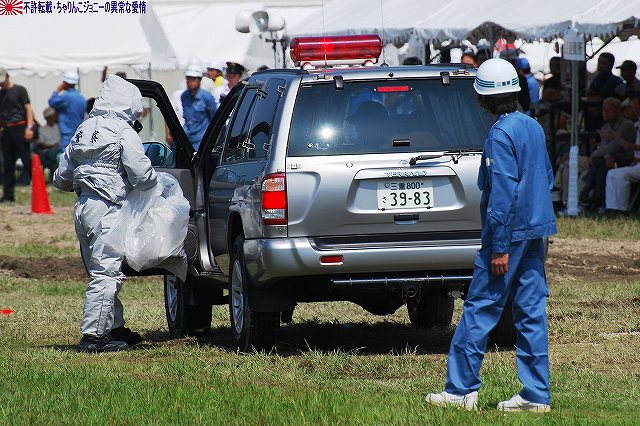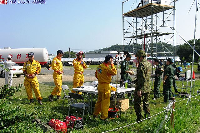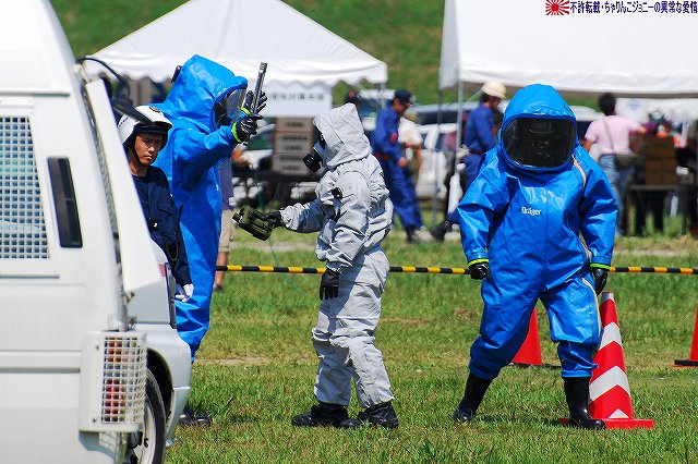 (左)陸自のUH-60JAと連携 (右)空自のUH-60Jが着陸する 地震の混乱に乗じて生物・化学兵器を用いたテロ(BCテロ)が発生 (左)こちらがその「現場」。 毒ガス(実際には虫も死なないほぼ完璧に無害な着色ガス…色も黄色だし)が発生中。 (右)警察と消防の車両が急行 (左)鈴鹿市の救助工作車 (右)その車体には鈴鹿市のマスコットキャラ、ベルディ君のイラストが描かれていた。 (左)防護服を着た消防隊員が輸送車(トラック)より器材を降ろしている。 (右)警察のマイクロバスも到着。車内には既に防護服を着た機動隊員の姿が見える。 (左)除染用の器材を装着中。 (右)積み込まれようとしているのは、使用された薬剤のサンプルかも? (左)消防が救出/除染した要救助者を救急車似て搬送。 (右)ホットゾーン内への進入は、与圧式防護服を着た隊員が行った。 写真はホットゾーンより撤収し、除染後測定器(ガイガーカウンタ?)による測定を受ける機動隊員。 撮影ポイントの都合で警察の写真ばかりだが、消防の同様の装備の隊員も救助活動を実施していた。 ちなみに今回は陸自の科学隊は登場せず。 写真は日赤のエアーテント。ここで負傷者の手当てなどを行う。 陸自や一部消防等にも同様の装備がある。 陸自の野外手術システムもやってきていた。 第10後方支援連隊(春日井)の所属車両だった。 (左)陸自の炊事車。 ボランティアによる「炊き出し」の支援に来ていた様。 (右)訓練に参加したものと思われる偵察バイクが、隊友会のテントの前に置かれていた。 (左)訓練を終え会場隅に居た伊勢市の消防車。この後次の訓練に参加するため移動。 (右)メーカーが持ち込んだ小型の消防車が展示エリア似て展示されていた。 その他各種防災関連の展示があった。 つづく。 本投稿及び添付した写真は私ちゃりんこジョニーの著作物であり、他のサイト・掲示板及びブログ等への無断転載を禁じる。 特に、かつては「中華人民共和国萬歳」現在は「異常な愛情」と言う名のパクりブログを運営している、支那人窃盗常習犯sunbinsiftに対しては強く抗議する。 今年は伊勢市の県営サンアリーナを会場に実施されました。 写真は会場より見えた伊勢・安土桃山文化村の「安土城」。 (左)ヘリポートとして使用されたメイン会場横の芝生広場隅に停車していた、航空機誘導用の車両と高機動車。 (右)メイン会場隅に作られていた航空機部隊の現地指揮所(?)。 黄色い作業服は三重県防災飛行隊の、緑色の作業服は航空自衛隊の要員。 東海・東南海地震が発生し、伊勢地域各所に被害発生…と言う想定にて訓練開始。 (左)情報収集を実施する三重県警のトライアル隊。 普段は白バイ隊員として勤務している警察官だそう。 (右)上空よりヘリテレにて情報収集をする三重県警のアグスタA109「みえ」。 この他陸自UH-1Jと空自U-125Aが上空より偵察を実施した。 (左)救助犬登場。 2頭の犬が吠えれば要救助者アリ、と判断するとのこと。1頭のみが吠えた場合は3途埋めの犬を投入して反応を見たりもするそう。 (中・右)被害の甚大さに鑑み、自衛隊に対し災害出動要請が為された。 …と言う事で偵察バイク登場。 (左)救助の為消防が出動。写真は伊勢市の救助工作車。 (中)UH-1Jよりリペリング降下で隊員を投入。 (右)CH-47Jがパジェロを空輸してきた。 (左)空輸されてきた部隊と共に地上からの部隊も到着。 (右)警察の救助部隊も到着。 (左)医師と薬剤師を空輸してきた海保伊勢航空基地のベル212「かみたか」 (右)陸自UH-60JAも医師と薬剤師を空輸してきた。 トリアージタグを手にしている。 (左)33普通科連隊(久居)本部の軽装甲機動車 (右)その向こうではファイバースコープを用い倒壊家屋内部を検索中。 (左)救助した被災者を… (右)陸自の救急車へと運び込む。 そしてその状況を広報の隊員さんが撮影中。 (左)最後に救助犬にて倒壊家屋内部に要救助者が残されていないかを確認、ハンドラーより現場の指揮官に要救助者無しが報告される。 (右)部隊は次の現場へと移動してゆく。 …と言う事で、たまたま陣取った場所の目の前が陸自の「活動現場」だった為、陸自の写真を中心にお送りしましたが、当然ながら消防や警察による「救助活動」も実施されていました。 つづく。 本投稿及び添付した写真は私ちゃりんこジョニーの著作物であり、他のサイト・掲示板及びブログ等への無断転載を禁じる。 特に、かつては「中華人民共和国萬歳」現在は「異常な愛情」と言う名のパクりブログを運営している、支那人窃盗常習犯sunbinsiftに対しては強く抗議する。 |