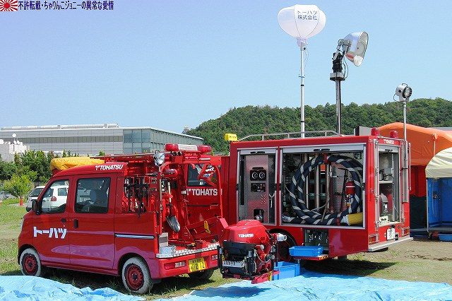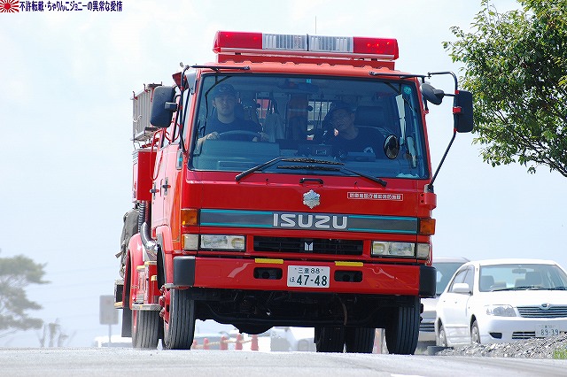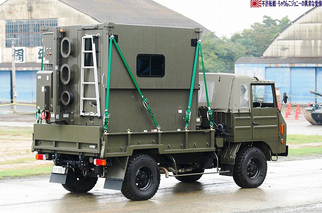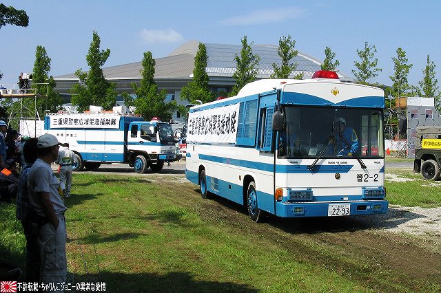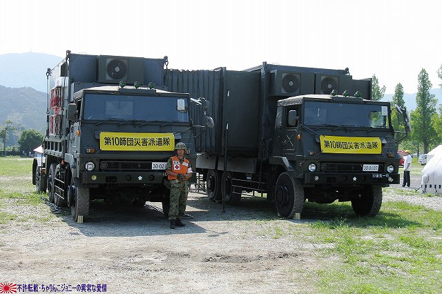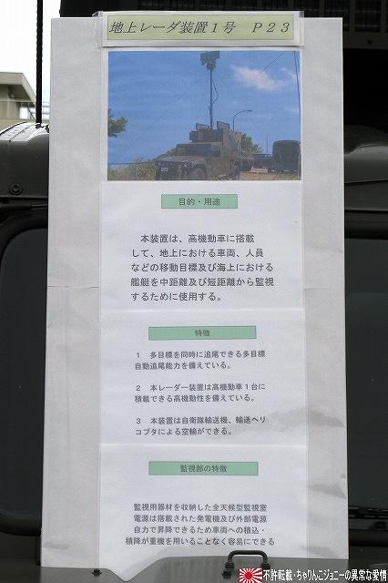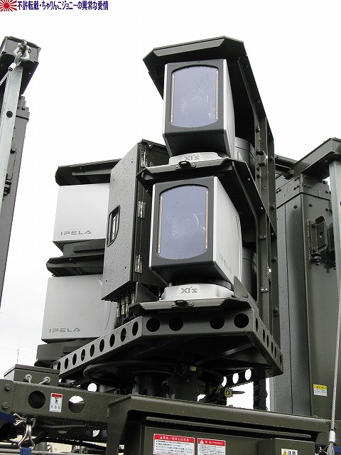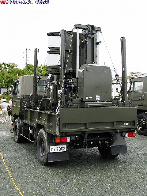今回は、そのレポート一回目は速報版も兼ねて、今年度新偏された中部方面移動監視隊の装備の写真をまとめてみました。 写真は観閲行進する中部方面移動監視隊の車両。前方より地上レーダ装置1号(P23)×2両・広域用監視装置(千里眼)・全天候型監視室。 地上レーダ装置1号 P23。 地上の車両・人員や海上の艦艇といった移動目標を、中距離及び短距離で監視するための装備。 高機動車の荷台に搭載されているが、空自輸送機や陸自輸送ヘリなどによる輸送も可能。 広域用監視装置「千里眼」。 可視カメラ及びサーマルカメラを搭載し、昼夜を通じて車両・船舶・人物等の移動を監視できる。 こちらは73式中型トラック(新)の荷台に搭載されていて、ジャッキ(アウトリガー)を用い、重機などの支援を受けずに自力で積み降ろしが可能。 (左)後ろに続いているのは全天候監視室。 (右)この時はカメラ部分にカバーが取り付けられていた。 上記各装置の運用を行うシェルタで、こちらも73式中型トラック(新)の荷台に搭載。千里眼同様自力で昇降可能。 千里眼用の映像記録装置はハードディスクを使用しているそう。 後方にはアンテナマストを伸ばした状態のP23が停車している。 P23は多目標を同時に追尾できるそう。 装備品展示にはP23と千里眼が参加していた。 展示されたP23 (右)説明のボード 展示された千里眼 (中)カメラ部分のカバーが外されていた。ちなみにカメラ部分はソニー製。 監視器材は、車両の荷台から降ろして据え付けたり、カメラ部分を伸ばして使用する事も可能だそう。 (左)千里眼の説明のボード (右)中部方面移動監視隊車両に記される所属表記は「中方移」。 ちなみに、今津駐屯地には来年度無人偵察ヘリが配備される予定だそう。 そのほか、式典の詳細などはまた後日。 本投稿及び添付した写真は私ちゃりんこジョニーの著作物であり、他のサイト・掲示板及びブログ等への無断転載を禁じる。 特に、かつては「中華人民共和国萬歳」現在は「異常な愛情」と言う名のパクりブログを運営している、支那人窃盗常習犯sunbinsiftに対しては強く抗議する。 写真はヘリポートに着陸せんとする三重県の防災ヘリ、ベル412「みえ」。 (左)倒壊家屋から出火…と言う想定で火災防御訓練開始。 (右)各地の消防隊が共同して消火にあたる。 写真は放水の体制に入った亀山市の消防隊員。 (左)放水開始。写真は桑名市の消防隊員。 (右)鳥羽市の消防隊員。 (左)「平屋」に対して放水中。画面右隅には伊勢市消防の指揮車と、「現場指揮所」が見える。 (右)もう一軒「三階建て」にも放水中。 消防隊の放水により火災は鎮圧された。 まずはじめに、8月末より9月上旬にかけて東海地方を襲った豪雨災害の被災者へのお見舞いを述べた。 ワタシは防災訓練は今回始めて見学したのですが、よく言われることではあるものの、災害に対する備えは先ず住民一人一人の備えから…との感想をもちました。 ましては、○月○日に地震が起きる…といった類の「予言」と言う名のデマを安易に信じたりしないとかね(^。^;) 此処からは、訓練終了後のマッタリとした(?)所の写真を。 (左)ヘリポートとされた芝生広場隅に居た高機動車。 ヘリの統制に用いられたと思われる、エアバンド用のアンテナを立てた明野航空学校のパジェロは既に引き上げていた。 (右)こちらも航空機の統制に用いられたと思われる、空自小牧基地のワンボックス車。 (左)撤収する亀山の消防車 (右)撤収する消防車。伊勢市のものだったかな? 折角伊勢まできたのだから…と、少し観光してゆく。 先ずは会場そばの二見興玉神社へ参拝。 (左)夫婦岩。 (右)その上では鵜が日光浴中。 次に伊勢神宮内宮へ参拝。 (左)拝殿付近は撮影禁止だったので、拝殿下の石段付近の写真を。 (右)境内に居た鶏。 おはらい町(おかげ横丁)にて、お約束の例のアレをオミヤゲに購入。 (右)おかげ横丁には招き猫グッズを集めたお店もあるので、猫好き及び猫グッズ収集家の方にはオススメ? 最後になりましたが、当日お世話になった皆様有難うございました。 本投稿及び添付した写真は私ちゃりんこジョニーの著作物であり、他のサイト・掲示板及びブログ等への無断転載を禁じる。 特に、かつては「中華人民共和国萬歳」現在は「異常な愛情」と言う名のパクりブログを運営している、支那人窃盗常習犯sunbinsiftに対しては強く抗議する。