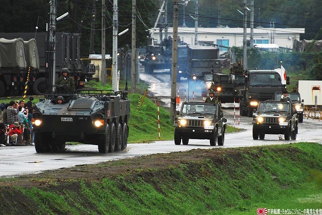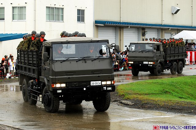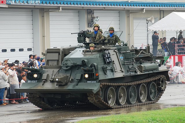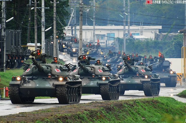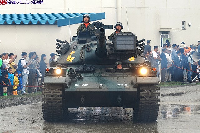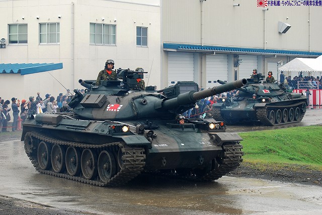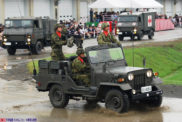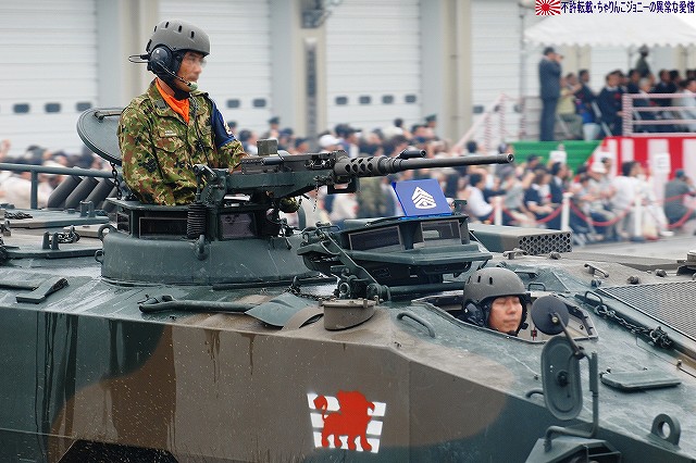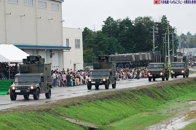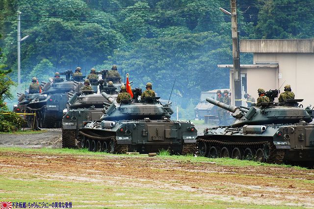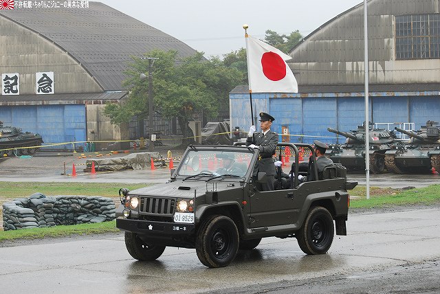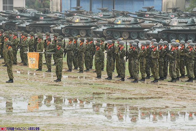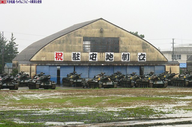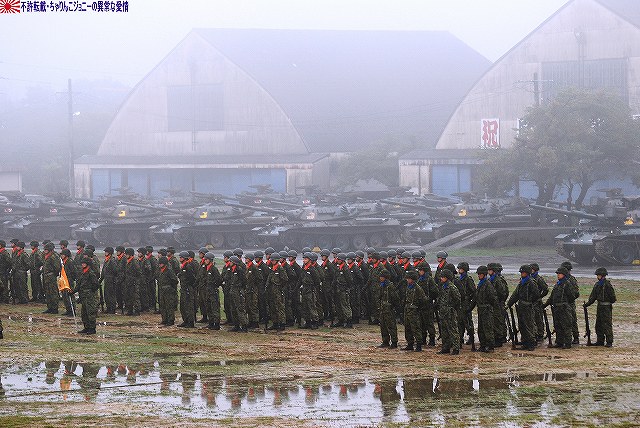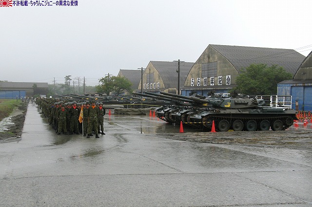 (左)会場であるパレード場の後方、格納庫の前に整列した戦車。 (右)会場に入場するため戦車の前に整列した隊員の皆さん。 画面右手前方の3台の74式戦車は、式典後の戦車試乗に用いるため、車体後部のエンジンルーム上に「カゴ」を取り付けている。 天候は、この時点では雨が降っていたが… (左)隊員の皆さんが会場に整列した頃には雨は止み…って替わりに霧が出てきたんですけど?!(^。^;) (右)国旗入場。式典が始まる頃には霧も晴れて一安心。 (左)国旗に敬礼…水溜を利用して兵力倍増!(^。^) (右)駐屯地司令による巡閲 その後、エラい人の挨拶やらナンやらが済んで(コラコラ)観閲行進開始。 (左)一列になって観閲行進へと向かう戦車 (右)観閲指揮官の乗る96式装輪装甲車を先頭に観閲行進開始 (左)第3師団傘下の第3後方支援連隊第2整備大隊戦車直接支援隊の重レッカ車 (右)第10師団傘下の第10後方支援連隊第2整備大隊戦車直接支援隊の78式戦車回収車。74式戦車のシャシーがベース。 (左)近畿地方の防衛を担任する第3師団傘下の第3戦車大隊の観閲行進。先頭は74式戦車と96式装輪装甲車。 (右)96式装輪装甲車には部隊最先任陸曹のプレートが取り付けられていた。車長ハッチの隊員さんが該当しているよう。 第3戦車大隊のマークは白い3本線に赤いライオンのシルエット。 第3戦車大隊の74式戦車。 都市におけるゲリラコマンド対策を重視した「政経中枢型師団」へと改変された第3師団傘下の第3戦車大隊には、2個中隊の74式戦車が配備されている。 (左)東海・北陸地方の防衛を担任する第10師団傘下の第10戦車大隊の観閲行進。 写真は本部付きのジープで、今回の観閲行進で唯一登場したジープ…だった筈。銃架にはMINIMIを搭載している。 (右)新人教育を終え部隊にて訓練中の新入隊員の皆さん。大型トラックに乗って行進した。 (左)観閲行進する第10戦車大隊の74式戦車。 機動力及び火力を重視した「戦略機動型師団」へと改変された第10師団傘下の第10戦車大隊には、4個中隊の74式戦車が配備されている。 (右)この戦車は赤外線サーチライトを装備している。 第10戦車大隊の74式戦車には、師団司令部が所在する名古屋に因み、お約束の金鯱マークが描かれてある。 …つづく 本投稿及び添付した写真は私ちゃりんこジョニーの著作物であり、他のサイト・掲示板及びブログ等への無断転載を禁じる。 特に、かつては「中華人民共和国萬歳」現在は「異常な愛情」と言う名のパクりブログを運営している、支那人窃盗常習犯sunbinsiftに対しては強く抗議する。 PR