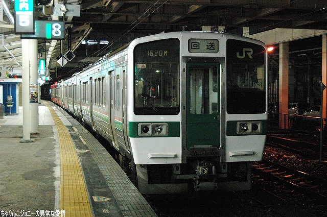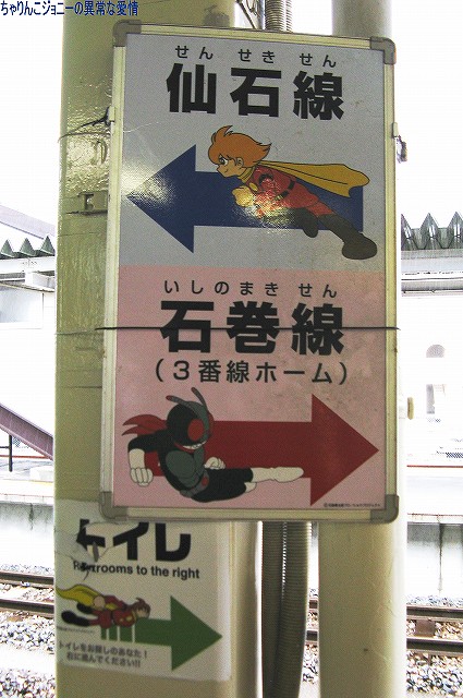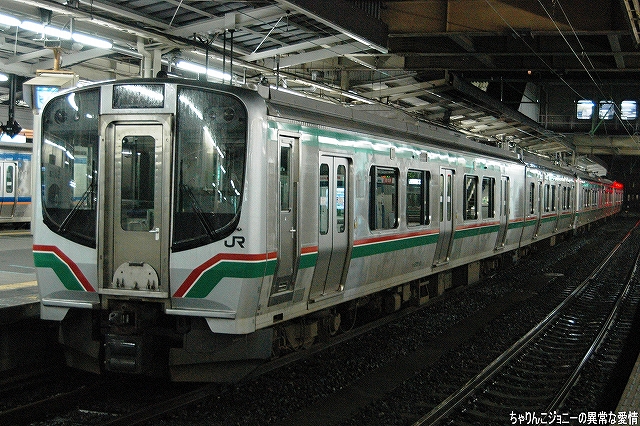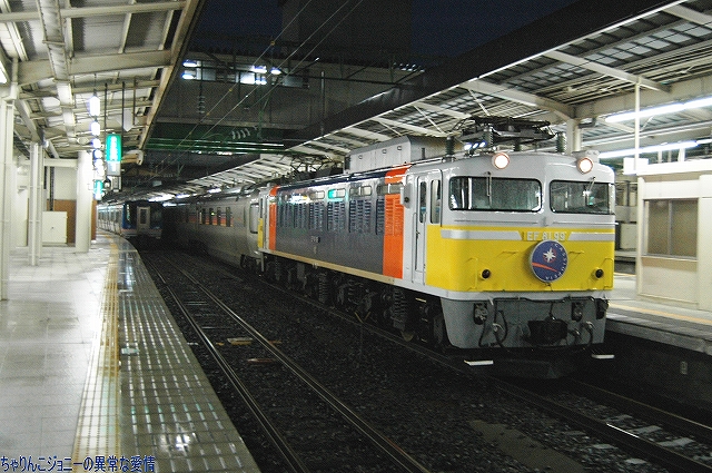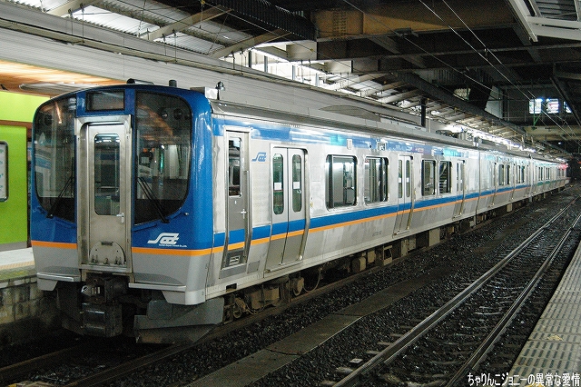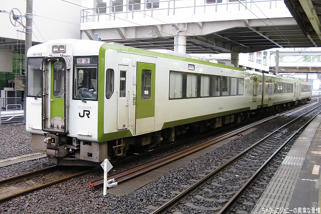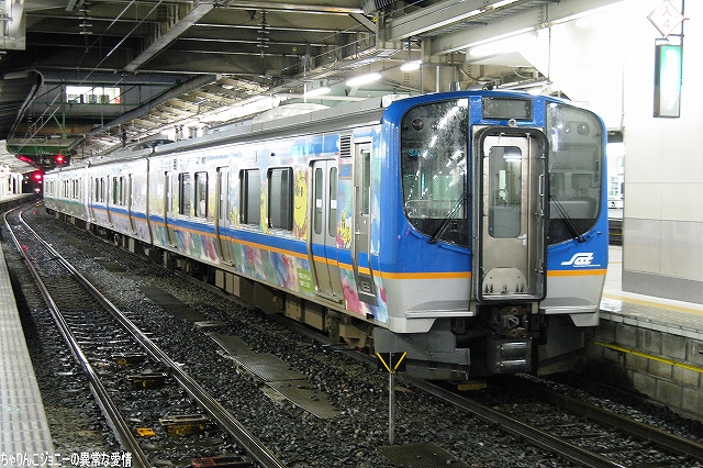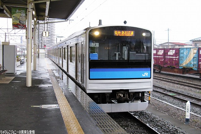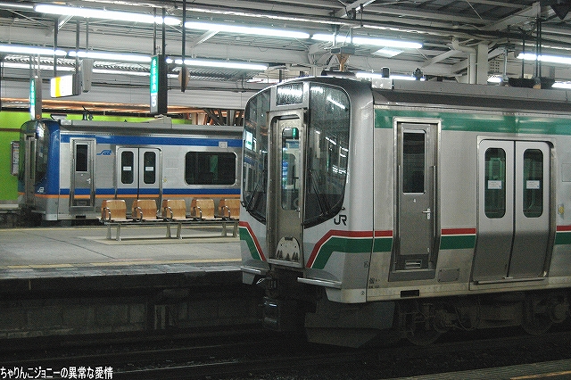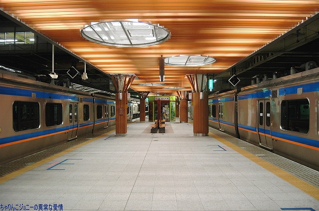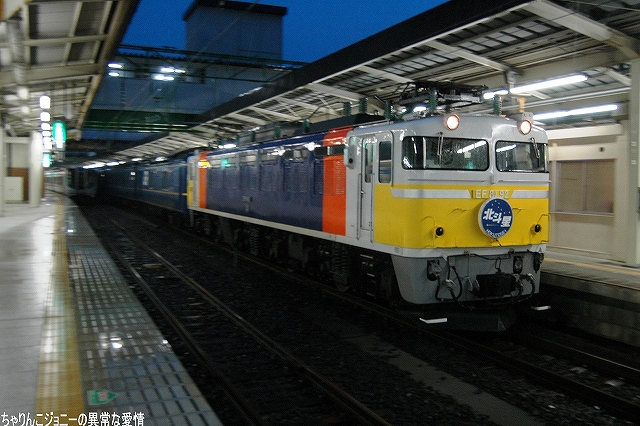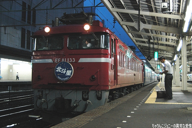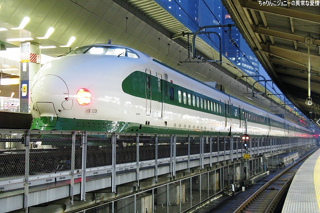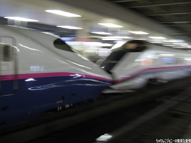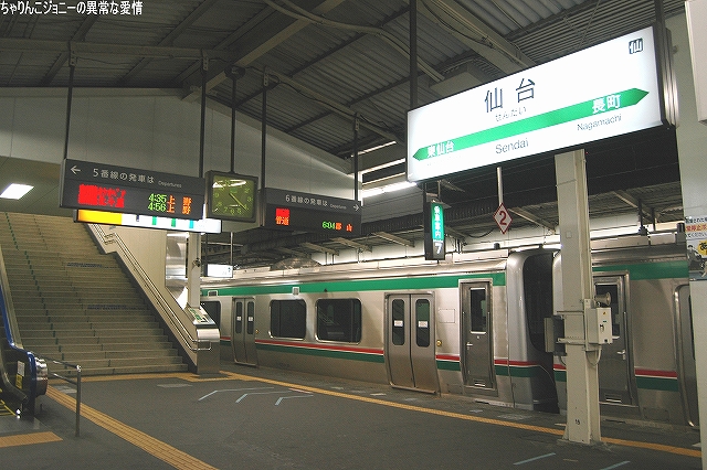 8/23日、横田基地より仙台へ向かう途上の東京駅にて撮影。 東海道山陽新幹線の0系電車は最後の現役車両が間もなく引退の時を迎えようとしているが、0系の流れをくむ外観の200系電車はまだまだ多くが現役にある。 …とは言え、国鉄時代よりの塗装を引き継いでいる車両は稀少。 ・石巻線の貨物列車 8/24日、石巻駅で帰りの仙石線電車を待つ間に2本続けて撮影できた。 (左)国鉄塗装のDE10ディーゼル機関車が牽引するコンテナ列車。 (右)暫くするとJR貨物塗装のDE10牽引のコンテナ列車がやってきた。 ・夜明け前の仙台駅にて… 8/24・25の両日は朝4時台に上野へむけ雁行してゆく2本の寝台特急「カシオペア」と「北斗星」を撮影すべく、夜明け前の仙台駅へ行ってみる。 (右)駅構内の案内表示には、国鉄時代からのフォントによるものも見られた。 寝台特急が来るのを待つ間に、駅構内に停車している電車を撮影。 まずは仙台地区の新鋭E721系交流電車。 JR東日本ではJR他社との形式名の重複を防ぐ為、近年登場した車両の形式名に「E」を被せている。 (右)こちらは基本形式の0番台。仙台地区の車両近代化のため昨年投入された、2両編成・3扉セミクロスシートの近郊型電車。 バリアフリーの観点等から、在来形式の出入り口に有ったステップを廃止する為、小径車輪を使用する等して低床化が図られている。 (左)500番台車は、昨年3月に開業した仙台空港線への直通用の車両で、ワンマン運転用の機器等所要の装備を搭載しているほか、塗装も0番台車と異なる。 (右)仙台空港行き乗り場は、木材を使ったデザインにリニューアルされていた。 SAT721系。 E721系500番台車の仙台空港鉄道所有車。塗装が異なる他はJR東日本車と大差ないようで、運用も共通の模様。 撮影できた編成も全てJR東日本車と組んだ4両編成だった。 (右)この編成にはイラストのラッピングが施されていた。 国鉄末期に投入された3扉セミクロスシート車。 さて、何で2日も続けて早朝の駅へ行ったかと言うと、使用する客車が1編成のみなので不定期な「カシオペア」の運転日を勘違いしていた為。(爆) 北斗星のほうは連日運転される。8/24の上り北斗星は、カシオペア塗装のEF81交直流電気機関車が牽引してきた。 8/25は上りカシオペアも運転。 使用される客車は1999年に新造されたE26系寝台客車。客室は全て2人用のA個室寝台。 (右)札幌方の車両はカハフE26形。 編成全体に電源を供給するディーゼル発電機の他、ハイデッカー構造にてラウンジと展望室が設けられていると言うユニークな車両。 ホームには此処まで運転してきた運転士さんがいる。(仙台駅で交替) 発車の模様の動画。 判っていた筈なのに警笛の音に驚いてビクッっとなっているヘタレぶりと合わせてお楽しみください(^_^;) ・その他仙台駅で撮影した写真 8/25日朝。松島へ行く際に撮影した写真。 (左)701系交流電車 本形式の投入により客車列車等多くの国鉄型車両を淘汰したため、ファンからは逆恨みで嫌われているフシがある気の毒な電車。 …とは言え、列車をまっていてロングシートの701系が来ると、内心「チッ、ハズレか」と思ってしまうのも正直な所(^_^;) (右)110系気動車。 JR東日本が各地の非電化ローカル線に投入したディーゼルカー。 気仙沼行き快速「南三陸」に使用するため側線で待機中。 使用されるのは首都圏より移ってきた205系電車。 仙石線と聞くとご存じない方はローカル線的なイメージを抱かれるかもしれませんが、ラッシュ時の光景は大都市の通勤電車そのもの。 撤収直前に仙台駅新幹線ホームで撮影した写真。 (左)「はやて」と「こまち」の連結部分を流し撮りで… (右)200系電車@JR東日本塗装。 先に仙台へ到着した「はやて」の編制後方へ秋田新幹線「こまち」を連結する所。 「こまち」の方はポケモンのラッピング編成だった。 この後、手前の「はやて」に乗車し帰還しました。 改めまして、現地にてお世話になった皆さん有り難うございました。