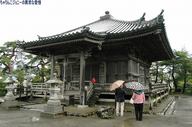 松島の遊覧船乗り場側の小さな島の上に立つお堂。後述する瑞巌寺の一部で、現在建っているお堂は1604年に伊達正宗により再建されたものだそう。 内部には五大明王像を安置。 …ここで、現地在住の親族と合流。以下道案内をしてもらっています。 ・瑞巌寺 伊達正宗は仙台城の築城のほか領内の神社仏閣の造営も行ったそう。 …と言いつつ写真は境内に有った「鉄道殉職者弔魂碑」。 国鉄時代に作られたもののようで、傍らには蒸気機関車の動輪も安置されてあった。 (中)本堂。大きくて画面に入りきりません(^_^;) 外観は如何にも禅寺…といった雰囲気だが、内装は豪華だった。 (右)庫裡(くり) 簡単に言うとお寺の台所。大屋根の上に煙出しが乗った独特な構造。 本堂と庫裡は国宝に指定されている。 ・円通院 伊達政宗の孫である光宗の菩提寺。瑞巌寺に隣接している。 お庭が綺麗で、特に紅葉の時期がすばらしいそう。 (左)茅葺の質素かつ落ち着いた山門 (右)奥に見えるのは伊達光宗の霊廟である三慧殿。 (左)境内にはバラ園が有ったりする。 (右)奥に見えるのは本堂「大非亭」。 19歳で早世した光宗を悼んだ政宗が、光宗の江戸納涼の館を移築させたものだそう。 ・塩竈神社 古くから東北鎮護・陸奥国一之宮として信仰を集めていたが、江戸時代に入りこの地を治めていた伊達氏は領内の神社仏閣の造営を進め、現在の塩竈神社の社殿は四代綱村から五代吉村にかけての治世の間に造営されたものだそう。 (右)境内には「右宮」「左宮」「別宮」…と三つの拝殿があるという、珍しい構造。(写真は「別宮」) 今回案内いただいたT君オススメのお店で、仙台名物牛タンの昼食を取った後。次の目的地へ移動。 青葉山に位置することから通称は青葉城。 1608年に伊達政宗が入城して以来明治維新後まで伊達家代々の居城として使われてきた。 当初より天守閣は設けられず御殿がその代わりを果していたが、当時の建物は明治維新以降破却されたり戦災により焼失したりで現存するものはない。 写真は城跡より望む仙台市内。 …とは言え、仙台へ来たならこの銅像は押さえとかないとね。(^。^;) この地に建つ政宗像は3代目のもので、戦前製の初代の銅像は戦時下の金属回収令で撤去され(※1)。 戦後コンクリート製の立像が立てられた後(※2)、昭和37年に現在の銅像が作られた。 ※1 胸から上の部分のみ溶かされずに残され、現在は仙台市博物館似て展示 ※2 現在は大崎市の岩出山城へ移設 仙台城は、逐次用語幾度かの改修を受けていおり、近年行われた石垣の修復作業に伴う発掘調査により、その変遷が明らかになっている。 (左)築城時の石垣のサンプル。自然石をほぼそのまま使用している。 (右)後年の改修時の石垣。四角く加工した石材を用い、横目地が水平になるよう組まれている。 仙台城のそばに有る、伊達政宗及び伊達家代々の墓所。 瑞鳳殿は伊達政宗の霊廟。桃山様式の建築物で戦前は国宝に指定されていたが、1945年空襲により焼失。 現在の建物は1979年に再建/2001年に改修されたもので、創建当時の姿を復元している。 こちらも瑞鳳殿とほぼ同様の構造を持っていたが(装飾などが若干控えめかな?)、戦災で焼失し再建されたもの。 ちなみに4代目以降は通常のお墓に葬られているそう。 ここまで見学した所で、帰りの新幹線に丁度よさげな時間となったので、駅まで送って戴き帰路につきました。 ちなみに、宮城県と言えば、6月に発生した岩手・宮城内陸地震が記憶に新しい所ですが、今回回った地域では地震による被害や影響は見当たらず、観光などには全く支障がありませんでした。 最後になりましたが、当日ご案内いただいたT君ご夫妻および、3日間同行させていただいたTさん大変お世話になりました。 先ずは日本三景のひとつ松島へ。 天候は相変わらず雨だったものの若干小雨気味…と言う事で、今次遠征中では一番の好天でした。(^_^;) 仙石線松島海岸駅で下車し、少し歩くと観光船乗り場へと到達する。 (左)桟橋のこちら側には塩釜-松島間を航行する観光船が停泊していた。 何故このルートかと言うと、松尾芭蕉が船により松島へとやって来た事に因むのだそう。 それはともかく、船名が「やまびこ」「あおば」と東北新幹線の列車の愛称やねー。 (右)で、桟橋のこっち側が松島湾周遊の観光船乗り場。 奥の第三仁王丸に乗船しました。 (左)第三仁王丸の船内。ちなみに追加料金を払うと2階の「グリーン席」へ移る事も出来る。…が我々は船尾のオープンデッキにて撮影。 乗船開始直後なのでガラガラですが、出港間際には平日の朝イチの便なのに結構な乗船率でした。 (右)エンジンの音 轟々と はやぶさが行く(^。^) その後には乗船客からエサを貰おうとかもめが続く。 松島の遊覧船は複数の会社が様々なコースにて運航しているようなので、ご利用の際は各自研究の上都合の良い便を利用するのが吉。 (左)さて、松島遊覧のマストアイテムと言えば、やめられないとまらない…なこれ。(^。^) 