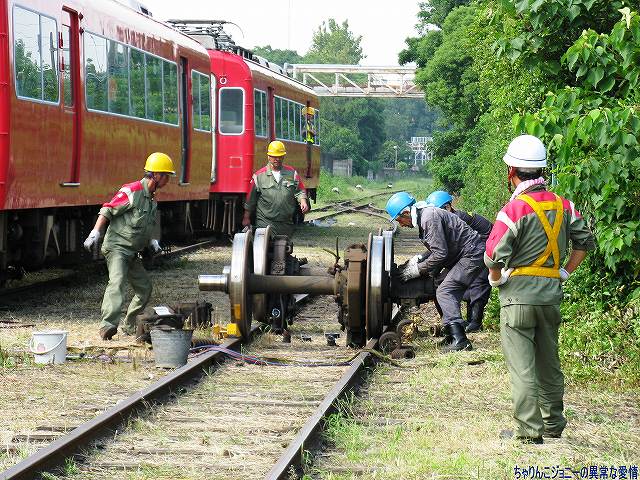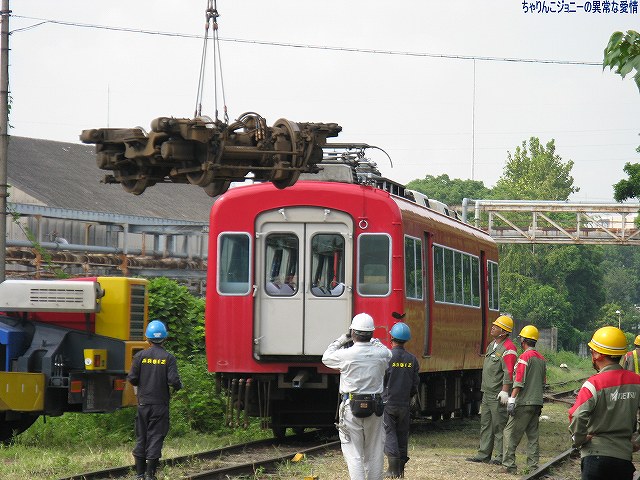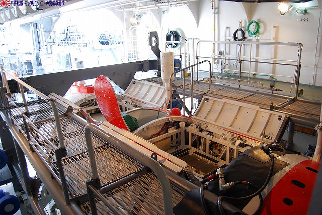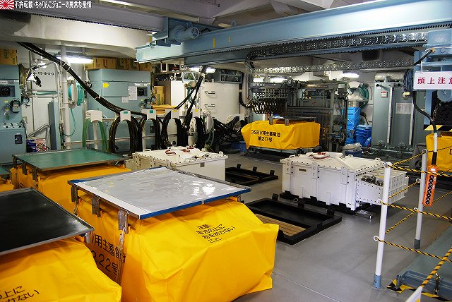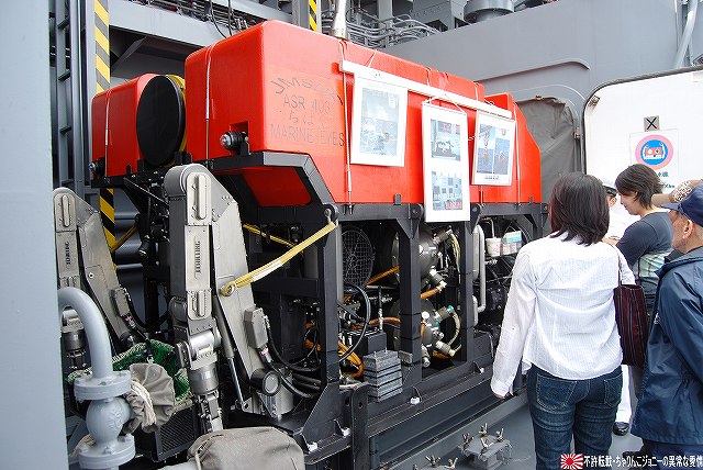 × [PR]上記の広告は3ヶ月以上新規記事投稿のないブログに表示されています。新しい記事を書く事で広告が消えます。 ワタシが現場を通りかかると、既に移動済みの車両の台車をクレーン車にて吊り上げて移動させている所でした。 写真は台枠のみ吊り上げられるFS335台車 (左)線路上に残された車輪及び車軸部分。その場にて(軸受け等の?)一部部品が取り外されていた。 (右)車輪及び車軸部分が吊り上げられて居るところ。手前には先ほど吊られていた台車の台枠部分が置かれている。 続いて次の車両の車体が吊り上げられ移動する。 2台のクレーン車が息を合わせての作業。 (左)今度は残された台車を移動させる。ミデン型のように見えるのでFS384かな? 再利用するのか車輪をつけたまま移動させていた。 (右)残った一両を吊り上げ位置まで移動させる。 車体の陰になっていた見えないが、陸軌車にて押している。 (左)両端の先頭車を含む4両は既に移動済みだった。 (右)今回搬入されたのは7019以下の6両編成のよう。 (左)手前に築港線名物平面クロスが見える。 (右)屋根上に乗っているのは鉄道車両用エアブレーキのタンクかな? 車両のエアブレーキと接続する為らしいホースも見える。 車体後部にはヤナセと犬山成田山のステッカーが貼られている。 踏み切り部分を利用して道路に下りる。 (左)この時はまだ「鉄道モード」。 車体の前後の小さな車輪をレールに乗せている。 駆動力はタイヤより直接レールに伝える方式のようで、必然的に軌間(レールの幅)似合わせてタイヤの幅=車体の幅が決まり、小ぶりな車体になっているよう。 (右)「鉄道モード」用の車輪を跳ね上げた所。 (左)「道路モード」に「変形」完了! 係員さんの誘導で車道に出る。 (右)そのまま道路走って帰還。お疲れ様でした。 ワタシも次の所用があったりしたので、これにて撤収しました。 ※今回の写真は、係員さんの許可を得て作業の邪魔/危険にならない範囲で敷地内に立ち入らせて貰い撮影したものです。 ※作業現場などへの無許可での立ち入りは絶対に止めましょう。 PR 「ちはや」の艦名は大阪府千早赤阪村に所在する千早城に由来しているという、いわば「ご当地艦」です。 (左)先ずは艦橋より見学開始。「ちはや」の艦橋は後述するRICとメゾネット構造(?)になっているせいか、やや天井が高めのよう。 (中)舵輪付近 (右)ウイング部分の窓にはこんな張り紙が…。 (左)艦橋後部の一段高い位置に有るRIC(Rescue Information Center =救難指揮所)も公開されていた。 RICの上段席は指揮官席のよう。前方の壁面には各種モニタが並ぶ。 (中)RIC後部にある海図台(勿論艦橋にも海図台は有る) (右)海図台上部の通信機器(?)等。 「ちはや」には深海救難艇(DSRV)の他、潜水員を水中に投入する水中昇降室(PTC)や無人潜水装置(ROV)を装備している。 DSRV格納庫上部にはDSRVの蓄電池の保管や充電・整備等を行うスペースが有った。 (右)その壁面には演習参加記念のパッチが飾られてあった。 …という事で、此処からは DSRV(Deep Submergence Rescue Vehicle)は沈没した潜水艦にドッキングし、乗員を救出するための小型有人潜水艇。海上自衛隊はこの「ちよだ」と潜水艦救難母艦「ちはや」に各1隻ずつの2隻を保有している。 (左)格納庫に収まっているDSRVを前方より。 (右)船体中央部のDSRV格納庫前方には、DSRV揚収用の開口部が有る。 (左)DSRVの上部。 3個所あるハッチのうち中央のものが乗員用、前後のものが畜電池用で、蓄電池は格納庫上部に有る前述の保管室よりリフトにて下ろされてくるよう。 (右)DSRV後部のようす。 (左)「ちはや」の銘板等。 その艦歴には2001年、パールバーバー沖で米原潜に接触され沈没した宇和島水産高校の実習船「えひめ丸」船内の捜索作業も含まれている。 (右)その捜索作業にDSRVとともに用いられた機材がこの無人潜水装置(ROV)。 (左)「ちはや」の後部は飛行甲板になっている。 格納庫は無いので恒常的なヘリの運用能力は無いが、飛行甲板は広いのでMH-53でも着艦できそう。 「ちはや」は、阪神淡路大震災の教訓により、レントゲン室や手術室など医療施設も充実しているといい、このヘリ甲板と合わせて潜水艦事故を含む災害派遣に活躍が期待できそう。 (中)警備に来ていたのか、海保巡視艇CL22「しぎかぜ」を撮影できた。 (右)護衛艦旗と「しぎかぜ」 見学を終えて下艦。 (左)特徴的な「ちはや」の艦体中央部。 (右)艦の横に展示されていた大阪地本のパジェロ。 ・ASR-403 潜水艦救難艦「ちはや」 基準排水量:5040t 長さ×幅×深さ:128m×20m×9m 主機/出力:ディーゼル2基2軸/19500ps 速力:21kt 特殊装置:深海救難難装置一式(固定武装なし) 定員:125名 オマケ (左)見学終了後は、同じ堺市内の南海電車浜寺公園駅を見学したり… (右)大阪市へ回りショッピング 難波周辺で見かけたおフネ (左)道頓堀川の遊覧船 (右)水陸両用バス 最後になりましたが、当日お世話になった皆様有り難うございました。 本投稿及び添付した写真は私ちゃりんこジョニーの著作物であり、他の