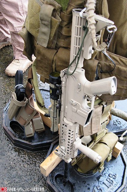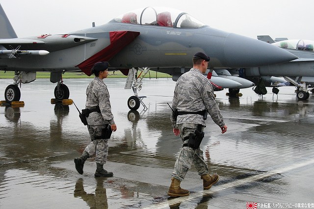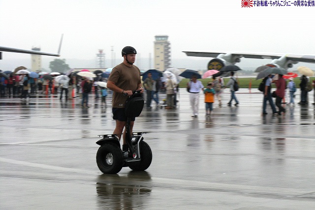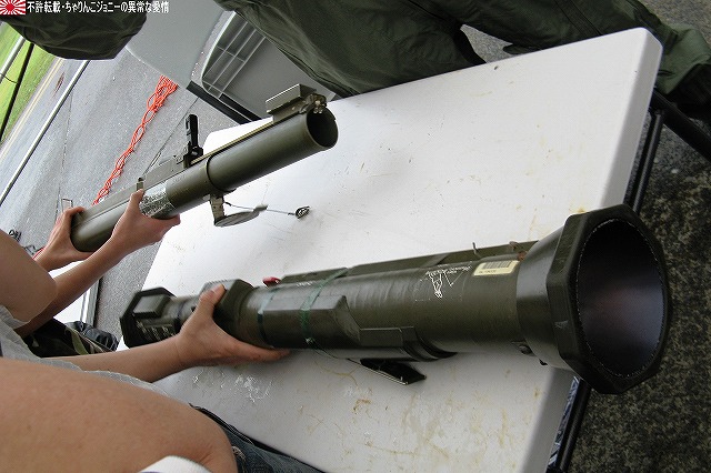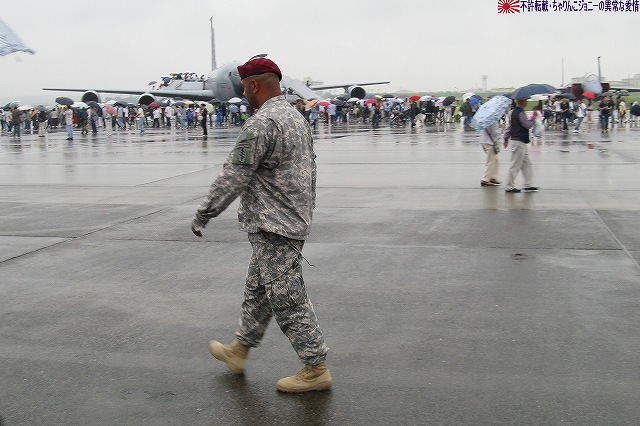 ・公開エリア外に居た航空機 (左)横田基地所属のC-130H輸送機。 横田基地は米軍の物資空輸に於ける中継点と言う位置づけなので、戦闘機等の配備はなく、配備されている航空機は13機のC-130のほかUH-1とC-12がそれぞれ4機ずつのみ。 (右)米軍のチャーター便として飛来する、ATI航空のDC-8。 奥の機体はエンジンを換装しているよう。 (左)C-5ギャラクシー輸送機。 1部2階建の胴体に最大118tもの貨物を搭載可能な「西側最大」の航空機。(「世界最大」はロシアのAn-124輸送機) (右)滑走路対岸に駐機していたC-17グローブマスターIII。 ・各種装備品展示 手前はM136 AT4。 使い捨ての肩撃ち式ロケットランチャーで、スウェーデン製。 奥はM-72LAW(Light Anti-tank Weapon)。肩撃ち式のロケットランチャーの代名詞として使われる「バズーカ」にかわって導入された小型のロケットランチャー。 小型軽量なため後継となるより強力なAT-4導入後も使用が続けられているそう。 ちなみにこちらも使い捨て式。つまり2つとも発射後の「撃ち殻」と思われる。 レイルシステム等がゴチャゴチャ付いていて原形を留めいてないが(^。^;)、リアサイト付近等を見るとM-14っぽい? 手前に見切れているのはM240機関銃。 (左)こちらはM-4カービン。ホルスターに入っている拳銃はグロッグみたい。 (中)流石米軍基地祭、スゲーなー…と思ってバシバシ写真を撮っていたら、M-4のグリップエンドに東京●井のマーク発見! il||li _| ̄|○ il||liデンドウガンデスヤン! (右)爆発物処理用のロボット。 実際に動かして見せていて、子供たちが興味津々で見入っていた。 ・兵隊さん色々 米空軍の基地警備兵…または21世紀によみがえったタイガーストライプ迷彩。 基地警備の兵士はACUっぽい配色のタイガーストライプ迷彩を着用。その迷彩柄のエッジはピクセル迷彩っぽいドット風の処理が為されてあった。 (左)海兵隊のパイロット。 見た限り海兵隊の乗員が着ている飛行服はカーキ色、空軍の乗員が着ている飛行服はグリーンのものだった。 (右)ACU迷彩を着用した陸軍の兵士。 肩のパッチと(この写真では写ってないが)ベレー帽のクレストを見るとグリンベレーのようだが、何故かベレー帽は臙脂色。 あるいは中止されたC-130よりの空挺降下展示のために来ていたのかも? 他にも数名グリンベレーが場内に居り、来場者との記念撮影にも気さくに応じていた。 ・車両色々 (左)会場内を走っていたセグウェイ。 軍用モデルなのかタイヤが太いよう。 (右)基地内の移動にはゴルフカートが多く用いられているようだったが、本部前に展示されていたこの車両はキャでラック風(?)のカウルを被っていた。 (左)K-9(警備犬)ユニット用のトラック。 (右)憲兵隊のパトカー。国産車で表記も控えめ (左)アメリカンな救急車。 (右)お馴染み陸自の高機動車が展示されていた、第一施設団のものかな? (左)偵察バイクも展示されていた (右)その傍らでは、救助用器材の実演を黙々と実施中。 …と言う事で、雨の横田友好祭レポートは以上です。 土曜日の横田友好祭といえば展示航空機の夜間撮影が楽しめ、今回は雨だったので綺麗な写真が撮れる可能性がありましたが、後の日程があるので明るいうちに撤収しました。 その後、 最後になりましたが当日現地にてお世話になった皆さん有り難うございました。 本投稿及び添付した写真は私ちゃりんこジョニーの著作物であり、他のサイト・掲示板及びブログ等への無断転載を禁じる。 特に、かつては「中華人民共和国萬歳」現在は「異常な愛情」と言う名のパクりブログを運営している、支那人窃盗常習犯sunbinsiftに対しては強く抗議する。 |