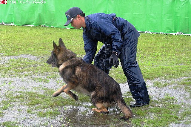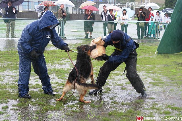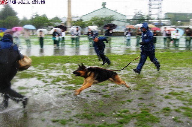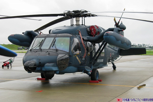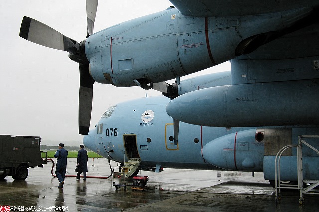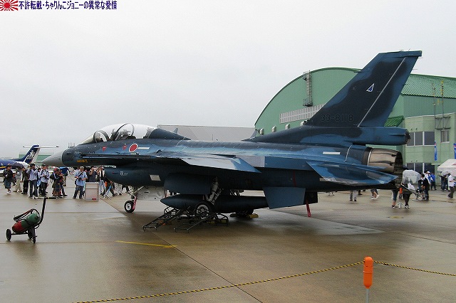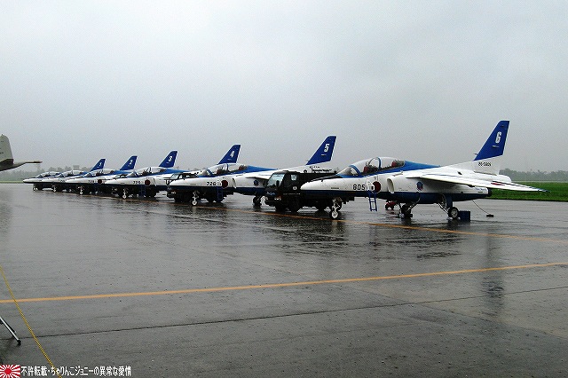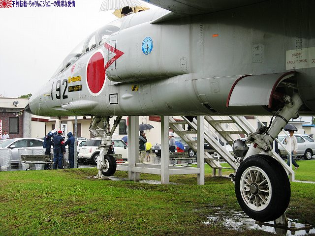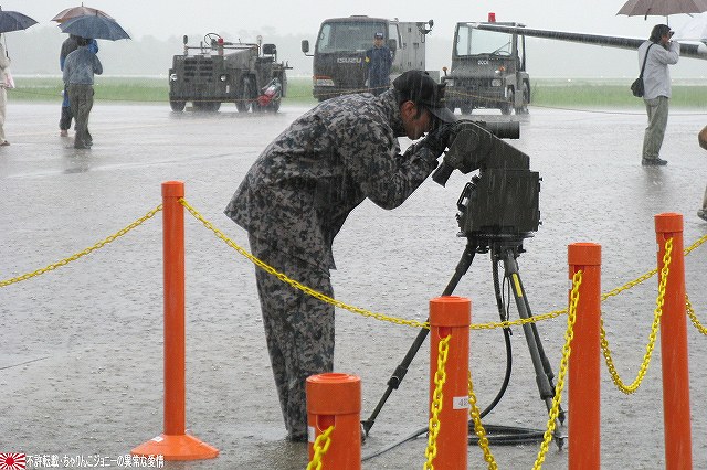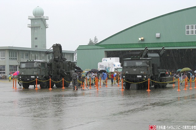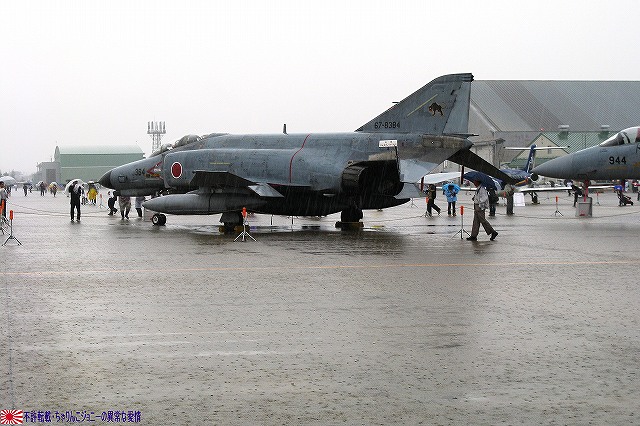 ・対空火器等の展示 (左)格納庫内に展示されていたT-2高等練習機@ブルーインパルス塗装。 この写真は朝一番の時に撮影したものがが、時間が進み雨が酷くなってくると、格納庫内はお約束の難民キャンプ状態になっていた。(^。^;) (右)こちらも格納庫内に展示されていたVADS。 航空機の固定武装などに使用されている20mmバルカン砲に射撃管制レーダー等を取り付け対空機関砲としたもの。近年さらに光学照準機が追加されている(向って右上の球形のもの)。 格納庫内には肩撃ち式の地対空ミサイルも展示されていた。 (左)米国製のスティンガー。 (右)国産のSAM-2。スティンガーを更新中。 (左)屋外に展示されていた81式短SAM (右)光学照準機を調整中(?)の隊員さん。レーダー誘導方式の81式短SAMだが、何らかの理由にてレーダーが使用不能の場合、光学照準による発射も可能とのこと。 それはともかく、隊員さんが着用している上着に注目。防水/防寒を目的として今年より導入されたという新型のもので、迷彩模様が従来の「空自迷彩」のものと異なり、陸自の旧迷彩のような色合いのデジタル迷彩…といった感じ。 ちなみに、中に着ている(筈の)作業服は従来の「空自迷彩」のもののよう。 ・警備犬展示 酷い雨で会場のグラウンドも水浸しなので、お犬様のテンションもさぞや低かろう…と思いきやノリノリでした。(^。^) (右)障害物を飛び越える。今年の松島ではこれも貴重な「飛行展示」?! (左)今度は侵入者捕捉の訓練。 「よっこいしょ!」と仕切りを乗り越え「基地」内に不審者が侵入。 (右)ハンドラーの号令を受け、 ・保存航空機 基地正門側の芝生に退役した各種航空機が「ゲートガード」として置かれていた。 (左)テキサンT-6練習機 (右)T-33A練習機 前出のT-33と手前のF-86Fには松島基地に所在する第4航空団所属を示す「4」の字を図案化したマーク(このマークは今も引き継がれている)が描かれてある。 奥のF-86Dには小牧基地所属を示す金鯱マークが描かれてある。 背後に見えている建物は第11飛行隊…つまりブルーインパルスの格納庫。 (左)T-2高等練習機。 場所の制約によりこんな写真でご勘弁。 (右)F-104Jスーターファイター戦闘機。千歳基地の203飛行隊のマーク付き。 レンズに水滴がついたまま撮影してしまった写真でご勘弁。 (合羽を浸透してきたり、袖口から進入してきたりした水滴により服が濡れ体が冷えててしまい、ある意味(((( ;゚Д゚)))ガクガクブルブル状態でした(^。^;)) 当日現地にてお世話になって皆さん有り難うございました。 本投稿及び添付した写真は私ちゃりんこジョニーの著作物であり、他のサイト・掲示板及びブログ等への無断転載を禁じる。 特に、かつては「中華人民共和国萬歳」現在は「異常な愛情」と言う名のパクりブログを運営している、支那人窃盗常習犯sunbinsiftに対しては強く抗議する。 今回掲載の写真は雨の状況がまだマシだった朝の写真と、どうしようもなくなっている(~_~;)お昼頃との写真が混ざっている点をご了承の程を…。 (左)入間基地のC-1輸送機 (右)同じく入間基地より飛来のU-4他用途機。 大型ビジネスジェットであるガルフVがベースで、主に要人を含む人員輸送に用いられている。 小牧基地のC-130H輸送機。 (右)春頃から各機に貼られていた第一輸送航空団30周年記念マークを、初めて間近に撮影することが出来た。 (左)ファントムの並び (右)百里基地より飛来のRF-4EファントムII偵察機。機首側面及び下面に偵察カメラ用の窓が開いている。 (左)三沢基地より飛来のF-4EJファントム改。 この第8飛行隊は目下F-2への機種転換中で、パンサーマークのファントムが航空祭で見られるのは今シーズン限りの模様。 (右)胴体下のハードポイントにECMポッドが懸架されていた。 (左)百里基地より飛来のF-15Jイーグル。 (右)地元松島基地のF-2B支援戦闘機。 複座型のF-2を用い戦闘機パイロット養成の最終段階である高等訓練を実施している。 美保基地のT-400練習機。 こちらは大型機パイロットの養成に用いられる小形ビジネスジェットがベースの練習機で、美保基地50周年の記念塗装機。 (右)美保基地(米子空港と共用)の所在する鳥取県出身の漫画家、水木しげるさんのキャラクター「鬼太郎」が描かれている。 (左)海自のP-3Cオライオン哨戒機。海自八戸航空基地に所在する第2航空隊所属機。 (右)米海兵隊のUC-12F。岩国基地より飛来。 同じく岩国基地より飛来した米海軍VFA-94のF/A-18Cホーネット×2機。 この飛行隊は目下の所空母には搭載されず、陸上基地より行動している。 (右)飛行隊のシンボル的存在として、派手な塗装を施された機体が来ていた。 (左)空自救難団のU-125A (右)同じく救難団のUH-60J 大型ヘリであるチヌークは主にレーダーサイトへの端末輸送等に用いられるが、空自でヘリを運用している部門…と言う事で救難団に配備されている。勿論大規模災害時等にはその大きなぺいロードを生かした運用が期待されるところ。 この日の空中消火の展示もこの機体で実施された。 陸自第