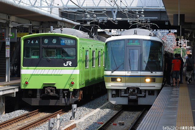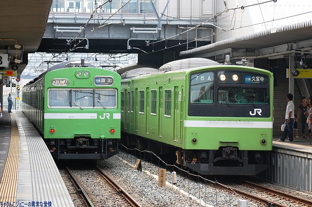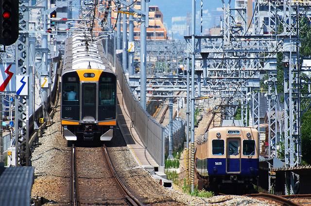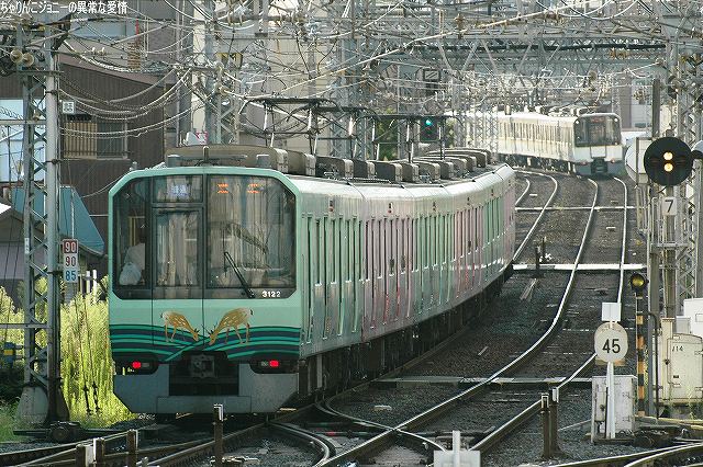 世界初のイージスシステム艦であるタイコンデロガ級巡洋艦の21番艦がこの「シャイロー」で、弾道ミサイル迎撃用のスタンダードミサイルSM-3の運用能力を持つミサイル防衛対応艦。現在は横須賀に配備されている。 今度は弥富埠頭側より撮影。どちら側からも埠頭の立入り禁止区域などの都合で後ろ側からの写真しかないのはご勘弁。 (右)艦尾の武装など。5インチ砲や対艦ミサイル発射筒の他、旗竿の向こう側には25mm機関砲も見える。 搭載ヘリ デター!! …ただし、御覧の状況なので機番等は不明(^。^;)トレタダケマシダケドネ 現地にてお世話になって皆さん有り難うございました。 尚、現地では写真のように警察等による警備が実施されており、我々一行も「何処からいらしたんですかー?」ってな感じの(少なくとも表面上は?(^。^;))フレンドリーな調子で職質のようなものを受けましたが、素直に「撮影に来たマニアです」と説明すれば無問題でしたので、慌てて逃げ出したりとか返って不審を招くような言動はしない方が吉だと思われます(^。^;)。…って明朝(8/28 0900)出港予定なんですけどね。 本投稿及び添付した写真は私ちゃりんこジョニーの著作物であり、他のサイト・掲示板及びブログ等への無断転載を禁じる。 特に、かつては「中華人民共和国萬歳」現在は「異常な愛情」と言う名のパクりブログを運営している、支那人窃盗常習犯sunbinsiftに対しては強く抗議する。 おおさか東線は、城東貨物線の一部区間を旅客線化しこの春に開業した新路線。 写真は関西本線の103系電車。 余談ながら、背後に見えている「株式会社モリタ」は国産ではトップシェアの消防車メーカー。 (左)おおさか東線の201系電車(左側)と関西線快速の221系電車(右側)。 (右)おおさか東線の201系電車どうしの並び。 おおさか東線では奈良電車区の201系及び103系が運用されている。 俊徳道(しゅんとくみち)駅で降りてみる。 (左)久宝寺行きの103系電車。 (右)放出行き201系電車。立体交差しているのは近鉄大阪線。 前出の久宝寺や俊徳道も結構な難読駅だと思われるが、「放出」と書いて「はなてん」と読ませるのは(漢字こそ簡単なものの)極めつけの難読駅…なのだけども、某ローカルCMのおかげで、多くの関西人は(学研都市線沿線住民でなくとも)読めると言う…(^。^;) 写真は学研都市線(片町線)の207系電車。 学研都市線の207系電車とすれ違って、おおさか東線の103系電車が入線してきた。 (左)103系と201系の並び。 将来的におおさか東線は新大阪まで延伸される予定。 (右)元々は貨物線であるおおさか東線なので、旅客列車が走るようになった後も貨物列車が設定されている。 やってきたのはDD51ディーゼル機関車の単機回送列車。 ・オマケ 順番は前後しますが、この後実施した京阪電車撮影のさらに後、帰還前に撮影した近鉄電車などの写真をドゾ。 かつては地下鉄各線で使用されていたが、現在は谷町線に残るのみ。 その後は、例によって帰りの特急を待つ間に上本町駅で近鉄電車を撮影。 (左)5820系(シリーズ21のL/Cカーバージョン)と30000系ビスタEX (右)21000系アーバンライナーと5820系 (左)9020系(シリーズ21の通勤車バージョン)。 この車両には阪神なんば線開業のラッピング広告を施してあった。写真ではわかりにくいが、なんば線のシリーズ21ラッピング車2両で、従来型の車両2両を挟んだ珍しい編成だった。 (右)12200系スナックカーの並び。 …つづく。 で、今回は“西部戦線”として阪神電車編です。 阪神電車は来年3/20に西九条-難波間を結「阪神なんば線」の開業(=近鉄奈良線との直通運転開始)を控えており、駅構内等には阪神タイガースの4番打者“アニキ”金本選手を起用したポスターが見られた。 淀川にかかる鉄橋上で擦れ違う5500系。 阪神の場合、普通用の車両は加速度重視、急行用の車両はトップスピード重視と性能荷より運用がキッチリ分けられており、普通用の電車は青系統の塗装から「青胴車」、急行用の電車は赤系統の塗装から「赤胴車」と呼ばれる。 当然青塗装の5500系は普通電車用。 (左)9300系が淀川を渡ってきた (右)新鋭1000系と擦れ違う。 どちらも近年増備された車両で、「こんなん阪神電車とちゃう!」な色とカタチだけども、実はワタシはこれがお目当てで此処までやってきたという(^_^;) 阪神本線と西大阪線が合流する、大物(だいもつ)駅へ移動。 (左)西大阪線で運用中の1000系増結車両がやって来た。 西大阪線は、なんば線関連工事のため大物駅構内より単線運転を実施していた。 (右)阪神本線下り線と立体交差して尼崎へと向かう。 (左)西大阪線との立体交差を駆け上がる1000系と地上の勾配区間を走る5000系青胴車。 西大阪線との立体交差は、なんば線開通に備え新たに作られたもの。 (右)西大阪線で運用中の5000系。 普通列車用の「青胴車」は、特急/急行列車のダイヤを阻害しないように高加速度性能を誇り、「ジェットカー」との愛称もある。 (左)大物駅を通過する8000系新塗装車。 (右)こちらの8000系は従来より