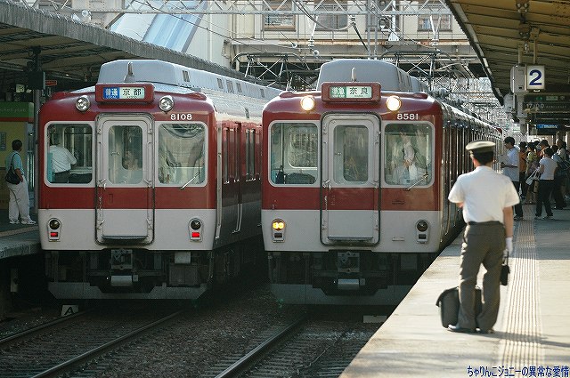 飛鳥時代に建立された法隆寺は現存する世界最古の木造建築にして、日本最初の世界文化遺産。 (中)三教院(国宝)と五重塔。 僧侶の袈裟の色の違いは階級の違いを表しているらしいけども詳細は不勉強にして不明。 (右)五重塔を中心とする西院伽藍は全体が国宝に指定されている (左)画面奥に見える東大門も国宝。安置されている仏像などを含め兎に角国宝だらけ(^_^;) (右)夢殿(国宝)。法隆寺を建立したと言われる聖徳太子を供養する為奈良時代に建立された八角形の殿堂。 JR法隆寺駅から一旦奈良へと出る。 写真は奈良から大阪へ向かう大和路快速。 (左)JR奈良駅は高架化工事が進んでおり、関西本線の部分は既に高架化されていた。 左側が此処まで乗ってきた201系の普通。右側は京都行き大和路快速として運用の221系。 (右)駅前には役目を終えた旧駅舎が保存されてある。 古都奈良の玄関口にふさわしい、寺院風の近代建築だった。 奈良市内を散策した後近鉄電車で帰路につく…がその前に、乗り換えの近鉄大和西大寺駅で少々「鉄」してゆく。 奈良線と京都・樫原線が十字に交叉する西大寺駅構内は、無数の…と言っても良いほどのポイントが交錯する。 写真は北方(難波・京都方)の状況で、左手方向が難波へ向かう奈良線、右手方向が京都へ向かう京都線の線路。 (左)8000系以下8連の奈良線急行。 (右)伊勢志摩ライナー…だかこの列車は伊勢志摩へは向わない奈良線特急として運用中。 (左)近鉄の新世代通勤車、「シリーズ21」同士の擦れ違い。 左側は京都市営地下鉄乗り入れ対応車3320系で、京都市営地下鉄-奈良間の直通急行運転を記念したラッピング車。 (右)ラッシュ時はロングシート、それ以外のときはクロスシート…と座席を回転させて使用する「L/Cカー」バージョン5820系。 西大寺駅の南方は、奈良線と樫原線に加え、折返し運転用の引き上げ線や西大寺検車区(車庫)への入出庫線も加わり、更にポイントの数が増える。 写真左が奈良へ向かう奈良線、右手が樫原神宮前へ向かう樫原線、その間に車庫への入出庫線が加わる。 (左)2階建て特急車「ビスタEX」同士の並び。 (右)8000系と8400系の並び、両形式とも広義にはどちらも8000系と呼ばれ、当初から冷房を搭載して落成した車両は丸屋根(左側の#8108)、非冷房車として落成し後に冷房化された車両は平屋根(右側の#8581)構造をもつ。 (左)西大寺に入線する京都行き急行 (右)西大寺に入線する難波行き普通 …と言うことで、初日はこれにて状況終了。 翌日は今回の3連戦のヤマ場、「浪花二正面作戦」です。(^。^) |