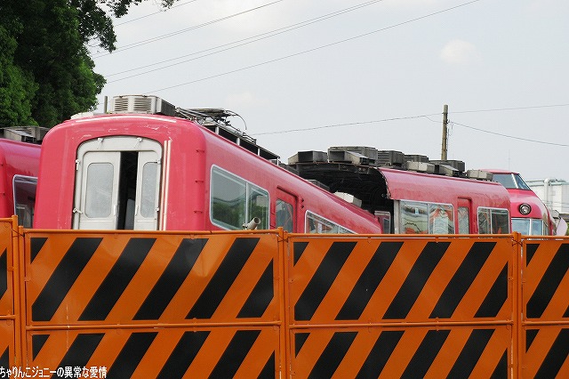 撮影場所は最近お気に入りの本星崎駅付近。 少し早めに現着したので、「肩慣らし」を兼ねて行き交う電車を撮影。 (左)6000系最終型以下の6連 (右)5300系2連×2の4両編成。 (左)パノラマスーパー一部特別車編成 (右)6000系後期型 本命の「三河湾」キター! 「三河湾 吉良吉田」と記された系統版を取り付けている。 種別が当時は無かった「快急」なのがナンですが、定期列車のスジでの運転なので、仕方ないですね。 現地にてお世話になった皆さん有り難うございました。 ・オマケ 昨日の解体場所 7/14に運び込まれた7003以下6連と思われる車両のうち、4両がまだ残っていたものの、各車とも車体中央部付近で真っ二つにされていた。