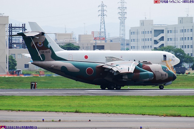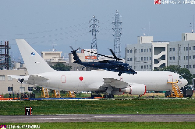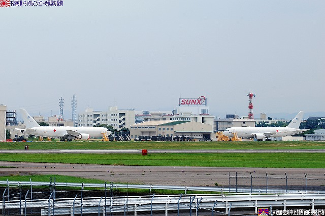 先ずは、小牧基地と言えば…な-130Hハーキュリーズ輸送機の写真。 航空自衛隊で唯一C-130を装備している第一輸送航空団は数多くの国際貢献任務に派遣された実績があり、今日でもイラク復興支援任務に機体と隊員を派遣している。 (左)#072。プロペラ先端より発生した「雲」が渦巻きを作っているのが見える。 (右)#073。C-130各機の機種後方付近には、第一輸送航空団創立30周年記念の白くて円形のマークが描かれてある。 (右上)#081。この日飛んでいるところを撮影できた唯一の「水色」のC-130。 (左下)#086。この機体は後部胴体上面に「タオルバー」と通称されるロラン用アンテナを装備している。 空自各基地間を結び人員や物資を輸送する「定期便」として飛来のC-1輸送機。 (左)#012。 (右)#019。どちらも入間基地の所属機。 小牧基地に所在する救難教育隊の所属機。 (右上)洋上迷彩のUH-60J。 (左下)U-125A救難捜索機。 大型旅客機による定期便こそ無くなった物の、様々な民間機のフライトが見られるのも名古屋飛行場の魅力。…と言う事で、ここからは民間機の写真。 (左)J-AIRのボンバルディアCRJ200。J-AIRはエンブラエル170の導入を決定している。 J-AIR名古屋飛行場をベースに運行しているので、通常の定期便の他、訓練の為のタッチアンドゴーなども見られる。 (右)中日本航空所有のセスナ560サイテーションV。 滑走路上にはダイヤモンドエアサービス(≒三菱の社有機)であるMU-300が見える。 (左)中日新聞の社有機であるリアジェット31A。(海自U-36Aと同型機) 中日新聞は本機の外に川崎BK117C-1とユーロコプターEC135P2の2機の回転翼機を保有している。 (左)愛知県警のアグスタ109「あかつき」。この2月に登録されたばかりの機体。 (右)川崎市消防局の川崎BK117B-2「そよかぜ2」。 川崎市消防局は2機のBK117を保有し、定置場は東京ヘリポート。名古屋へは整備に来ていた模様。 川崎市消防局のヘリは先日の海保観閲式にも登場していたが、その際は見事に撮影に失敗したので、期せずしてリベンジ達成(^。^) 写真では水煙に隠れてしまっているが、見学者と思しき人垣が出来ていたので、ある種「展示放水」だったよう。 放水しているもの以外の消防車も車庫の外に出されている。 つづく。 本投稿及び添付した写真は私ちゃりんこジョニーの著作物であり、他のサイト・掲示板及びブログ等への無断転載を禁じる。 特に、かつては「中華人民共和国萬歳」現在は「異常な愛情」と言う名のパクりブログを運営している、支那人窃盗常習犯sunbinsiftに対しては強く抗議する。 野茂英雄投手 引退お疲れ様でした… 野茂・吉井・阿波野…あの頃の近鉄は投手王国やったなぁ~(遠い目) まぁ、チームそのものが無くなった今となっては、詮無き事ですわなぁ~(T_T) ・東名高速バス バスジャック事件 犯人は「東京へ行って巨人戦を見たかった」と言っているとか… となると、凶器として使われた危険な果物ナイフと、青少年に有害な影響を与える巨人戦のTV中継などは今すぐ規制でつね!(爆) (^。^;)ジョウダンデスヨ! ネンノタメ… オマケ こんなん作ってみました。 アーバンネットワーク方向幕セーバ用データ・名鉄用(txt) ・近鉄用(txt) 電車の行き先を表示する部分を再現したものです。 さまざまな行き先が流れてゆくのを見ているだけで、なんだか和みません? え?ワタシだけ??(^_^;) ※使い方 まずアーバンネットワーク方向幕セーバ(フリーソフトです)をダウンロード。 使いたいデータを「メモ帳」等へコピーし、データフォルダへ置く。 ソフトの方の設定をする。 ※備考など このデータを使用して何かトラブル等が起こっても当方は一切責任を持ちません(一応書いとかないとね(^。^;)) 名鉄用は、ローマ字表記のないやや古めのものをモチーフにしてありますが、そのくせ「快特」や「中部国際空港」が有ったりします。 近鉄用のうち、阪神乗り入れ関連のものはワタシの妄想…と言うか悪フザケです。 何となく作ったものなので上記以外にもツッコミ所が多々有るかと思いますが、気に入らない所は各自修正してご使用ください(ってその前に使う人が居るかどうか…だけどね(^。^;)) 名鉄用データの作成にあたっては、名鉄電車の部屋 さん ttp://minmin_p.at.infoseek.co.jp/index-m.html 近鉄用データの作成にあたっては、布施発・近鉄電車倉庫室 さん ttp://yaduminato.s254.xrea.com/kintetu-/index.html …の資料を参考にさせてもらいました、有り難うございました。 すばらしいソフトを製作/公開していただいたたーやさん、有り難うございました。 写真は、エプロンに並んだKC-767J2機…ということで今回はKC-767編です。 (左)初号機。(87-3601) 納入直後にトラブルに見舞われ、以来フライトはしていない…らしい。 (右)弐号機。(87-3602) 弐号機の方はエンジンカバーが外されているので、フライトが有ると良いな~、と希望的観測をして見る(^。^;) どちらの機体も、目下のところ飛行開発実験団の手により実用化へ向けた試験/評価に使われているため、その間の「期間限定」で尾翼に