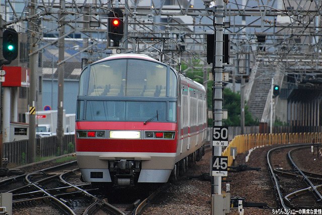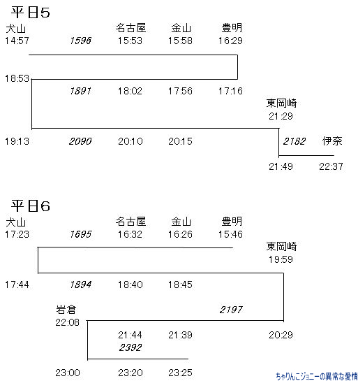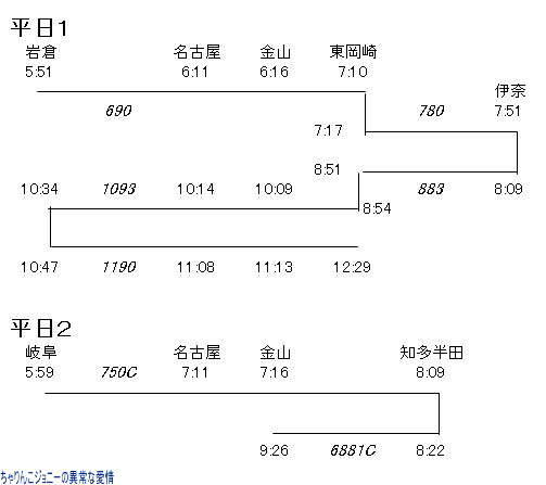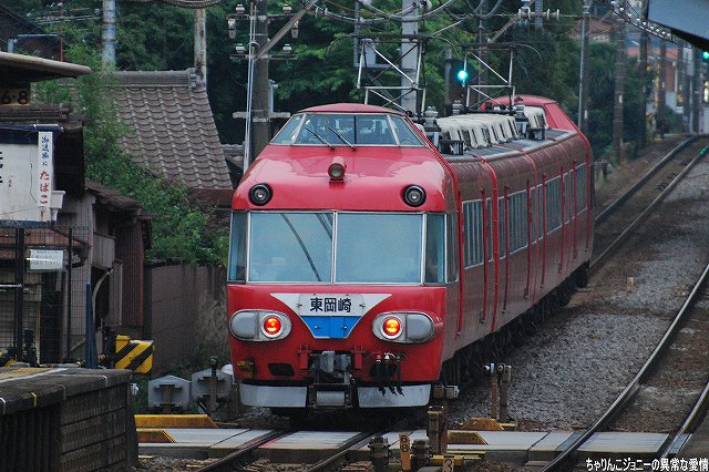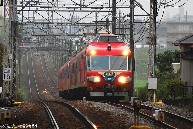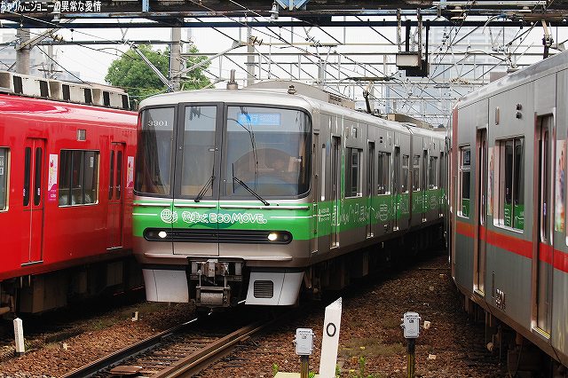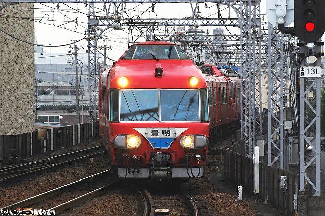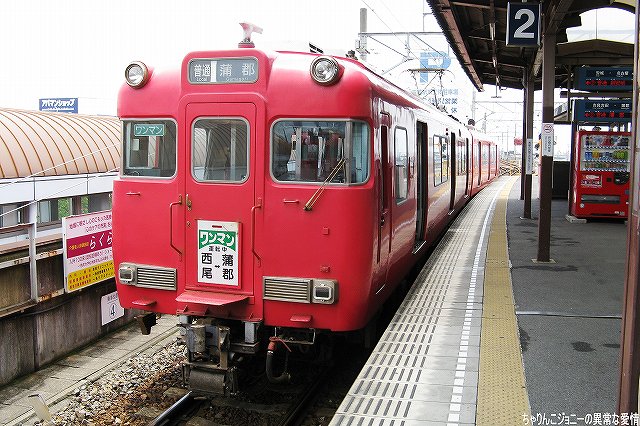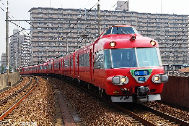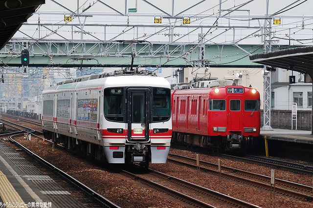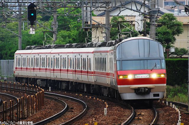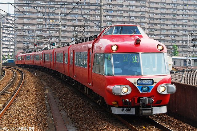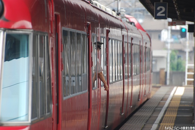 ひっさしぶりにエクセル使ったので、お見苦しい点が多々有ったりするのはご勘弁を。 が、その前に…ホントはこんなん書きたくないのですが念のため… ご注意 名鉄HP似て発表の7000系基本運転時刻表(平日 H20/6/29現在)を参考に、想像で組んだ運用表(らしきもの)です。 あくまで個人的に作成したものですので、間違い等有った場合はご勘弁を。また、ご利用は自己責任で願います。 本表のとうり運用が組まれていなかったり、 7000系が来たり来なかったりしても、当方は一切責任を持ちません。 平日…の運用番号は便宜上ワタシが勝手につけたものです。 斜体表記は列車番号です。 形式/種別/両数は、特記の無い限り7000系/普通/4両です。 検査の都合により、別の車種/両数で運行することがあるそうです。 ルールやマナーを守り撮影しましょう 運用をざっと見ると、ダイヤ改正までは「ハイライト」だった犬山-常滑線系統の急行運用がごっそり無くなり、同時に広見線及び各務ヶ原線への乗り入れもなくなってしまいました。 もうひとつの「ハイライト」と言える朝の8連運用は、他形式との併結…と言うカタチながら残置された模様。 中部国際空港への出入りは夕方~夜間のみ。 撮影が比較的容易そうなのは、犬山/岩倉-豊明/東岡崎の普通列車かな? 2運用あるので、何処かですれ違ったりする筈です。 …休日編はまたそのうち(^。^;) 写真は1600系による「西尾特急」。夕方の時間帯は佐屋-吉良吉田間に運転区間が延長されていた。 1380系の犬山行き普通がやって来た。 (左)5700系4連による東岡崎行き普通。 (右)6800系後期型以下4両の東岡崎行き普通(さっきから東岡崎行きの写真ばっかしやな!)と1600系の佐屋行き特急が擦れ違う。 ちゃんと踏切を渡ってお利口さん…と言いたいところだが、行き(画面左手からから右手方向へ向けての移動)は遮断機が下りて特急が接近中、と言う状況にもかかわらず平然と線路を横切ってゆき、見ていたワタシと友人を大いにアセらせてくれた。 7000系6連の豊川稲荷行き急行がやって来た。 1961(昭36)年より1975(昭50)年までに合計116両、続いて増備された改良型の7500系75両と共に、文字通名鉄の「顔」として活躍してきた「パノラマカー」も、この6/29のダイヤ改正以降は4両編成×3本=12両を残すのみとなる見込みで、その12両も平成20年度中には引退すね予定だそう。 最後になりましたが、当日現地にてお世話になった皆さん有り難うございました。 写真は岐阜行き快速急行として到着した7000系パノラマカー。 地下に作られている名鉄名古屋駅は、2線3面という大手私鉄の中心駅としては特異と言って良いほど規模の小さな駅で、上下線間に挟まれたホーム(写真では向って左側)を降車及び特急特別車の乗車ホーム、上下線の外側のホーム(同向って右側)を乗車ホームとし、さらに行き先や種別によって停車(=乗車)位置をずらす事により、多方面のよき先へと向かう多くの列車を捌いている。 0~16時の間は特急の特別車にも乗車できる1DAYフリーきっぷ利用ならではの行程、と言う事で、6/29のダイヤ改正にて廃止される「西尾特急」に乗って名古屋-西尾間を往復してみる。 動画・新安城-南安城 新安城より名古屋本線から別れて単線の西尾線を走行する、1000系パノラマスーパーの展望席より撮影。 写真は西尾-蒲郡間で使用される、「西尾線ワンマン仕様」の6000系。 「三河線ワンマン仕様」が、ホームセンサー対応/(無人駅の自動化により)料金箱ナシ…と言う内容なのに対し。西尾線ワンマン仕様車は駅施設の違いによりホームセンサー非対応/料金箱アリ…など、ワンマン運転用改造車両としては一般的な内容をもつ。 「西尾特急」には1000系の他1600系も使用されていた。 動画・金山-名鉄名古屋 一部特別車編成の展望車は豊橋方のみなので、岐阜方の展望席より撮影の映像は全車特別車編成全廃後は貴重になるかな? 名古屋本線国府宮-島氏永間へ移動。 水田が広がるこの区間は名古屋本線沿線では屈指の撮影ポイントなのだが、この区間を走る7000系の運用は少なく、写真の豊川稲荷行き急行の運用も日替わりで有ったり無かったりするものだそう。(7000系で無い時は他形式が走る) 名古屋本線堀田駅へ移動。 7000系+5300系の普通がやって来た。 (左)6500系(左側)と5000系(右側) (右)1600系の回送列車と6000系。 (左)パノラマスーパーの全車特別車編成 (右)1380系の豊明行き普通。 7000系の犬山行き普通。 7000系の岩倉行き普通。 平日の16時代には(15分間隔で)2本続けて7000系の普通列車がやって来ていた。 つづく。 細長くて 「目」がよっつ いったい なぁ~んだ? もとい、名鉄7000系パノラマカー …と言うことで飽きもせずにこの日も1DAYフリーキップにて撮影してきました。 (^。^;)ナンヂャソラ! 手前側の7100系は7000系の中間車を先頭車改造した形式で2両編成1本のみが在籍。 奥の7700系は7000系の増結用として製造された形式で、現在は2連×8本が在籍。 両形式とも全車が所謂「三河線ワンマン」対応改造を受け、主に三河線に